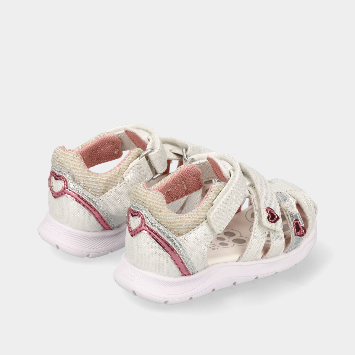 Sandálias confortáveis para menina, com frente e calcanhar fechados para maior suporte e proteção. Muito práticas, respiráveis e leves, com sola “Flex-zone” com linhas de flexão que acompanham o movimento natural do pé. Fechos de velcro para um ajuste fácil e seguro.