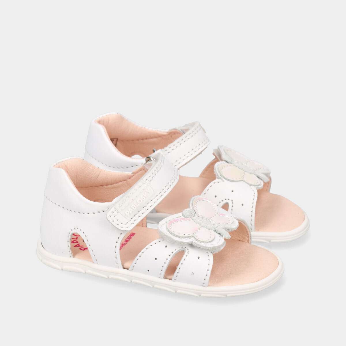 Sandália branca para menina, aprovada por especialistas em podologia da SEBIOR, combina conforto, qualidade e design. Confecionada com couro natural, que garante a respirabilidade adequada dos pés, e forrada com microfibra ecológica inTech, altamente absorvente e resistente. A palmilha acolchoada é antibacteriana, proporcionando maior higiene e conforto. A sola de borracha antiderrapante incorpora a tecnologia SUPERFLEX, permitindo uma flexão natural do pé. Os fechos em velcro asseguram um ajuste fácil e seguro.