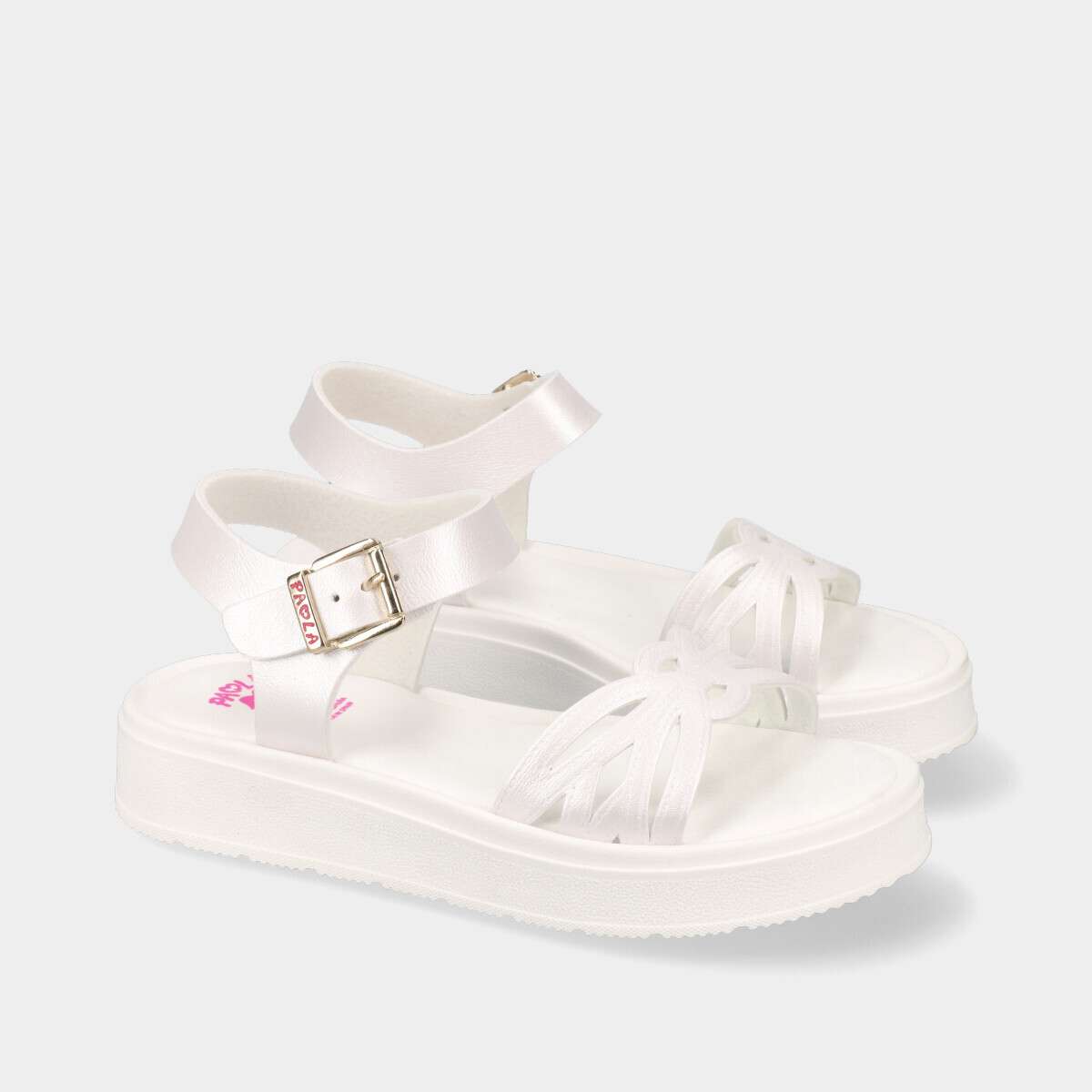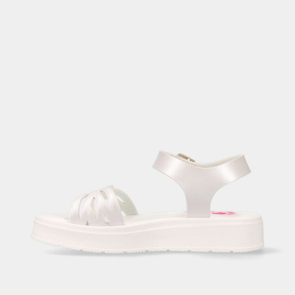 Sandália branca, confortável e elegante, fabricada com materiais reciclados que minimizam o impacto ambiental. Com forro têxtil respirável e palmilha acolchoada, superabsorvente e antibacteriana, garantem frescura e conforto durante todo o dia. A sola de borracha antiderrapante oferece flexibilidade e segurança, mesmo em superfícies escorregadias. O fecho de fivela tradicional proporciona um ajuste preciso, mantendo um toque de sofisticação.