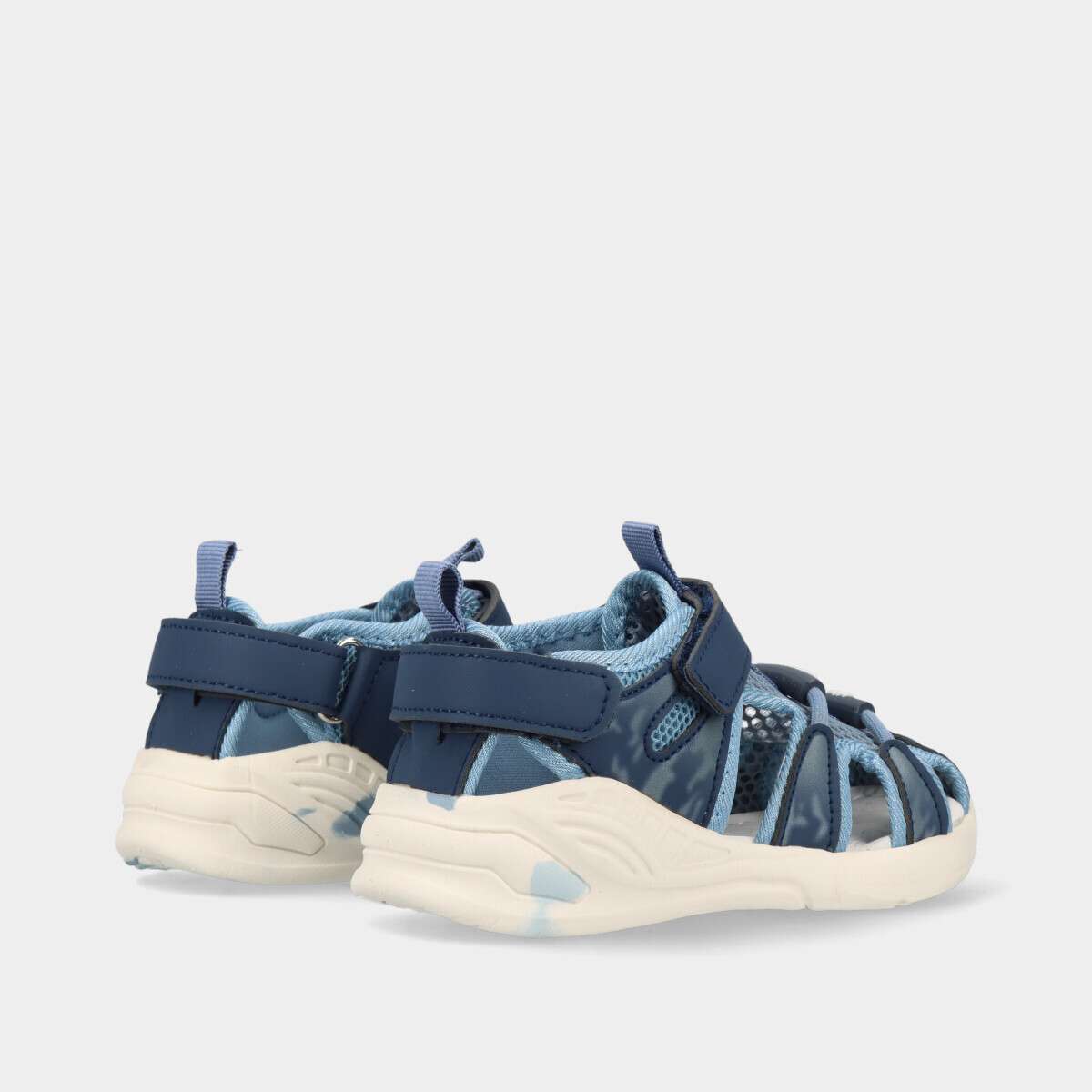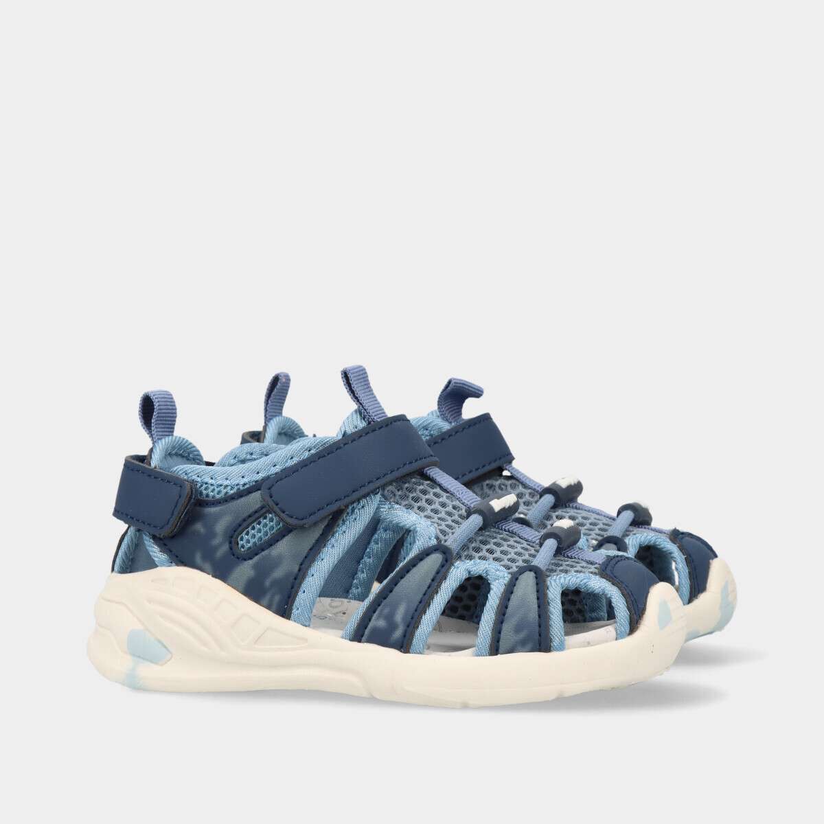 Sandália azul infantil para menino, leve e confortável, com velcros ajustáveis. Sola em Phylon flexível com ótima absorção de impacto. Ideal para o verão, praia, piscina e uso diário.