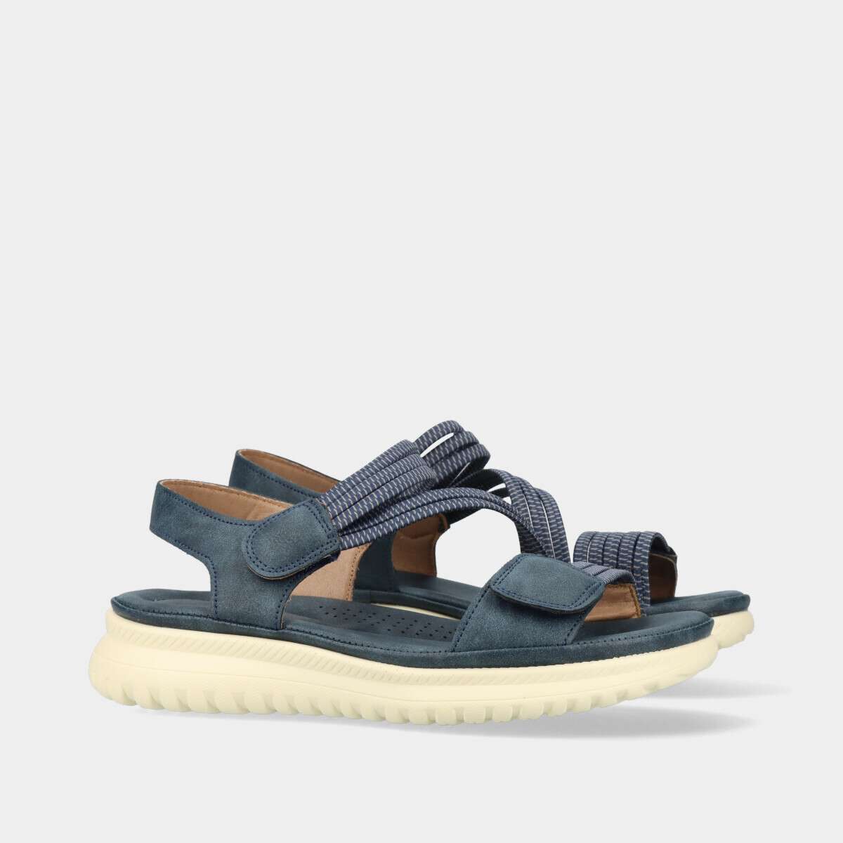 Sandálias confortáveis em azul, com palmilha em espuma macia e respirável que garante leveza e bem-estar. Uma escolha ideal para um look de verão elegante.