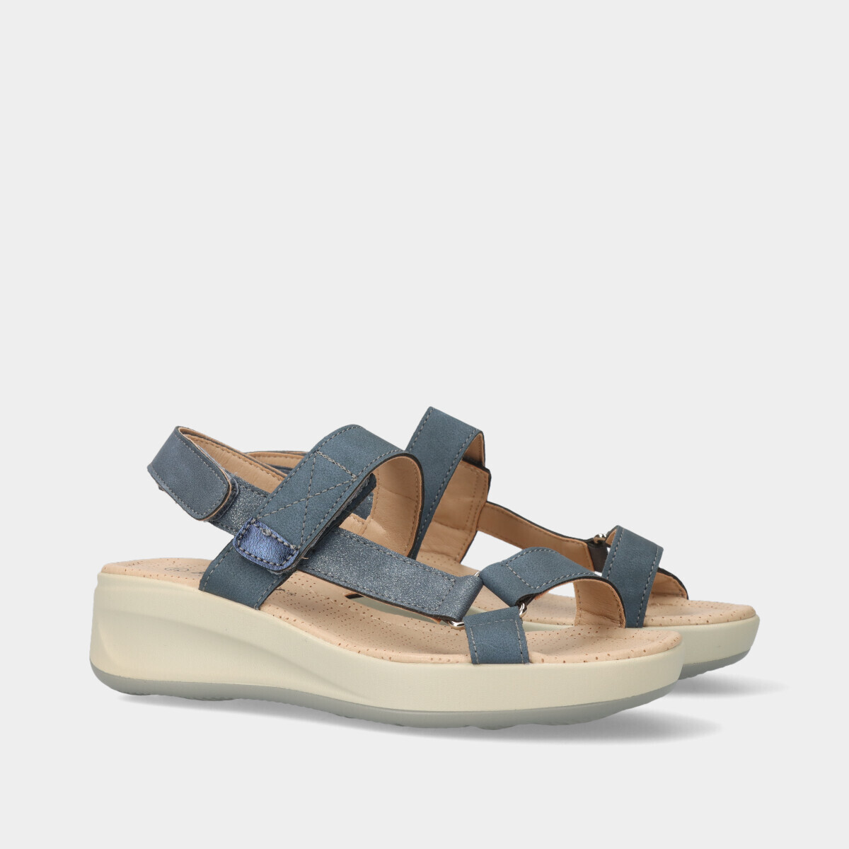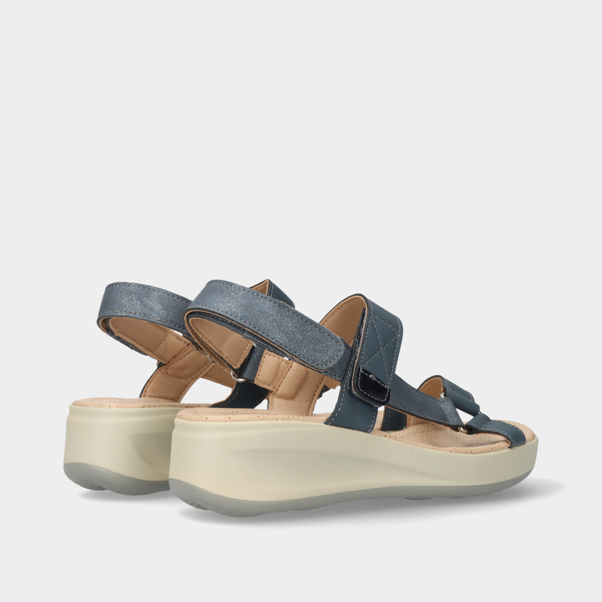 Esta sandália de conforto é a escolha perfeita para quem prioriza o bem-estar! Com velcros ajustáveis, proporciona um ajuste personalizado e fácil de calçar. O tom azul com detalhes brilhantes confere um toque de elegância discreta, combinando versatilidade com sofisticação.