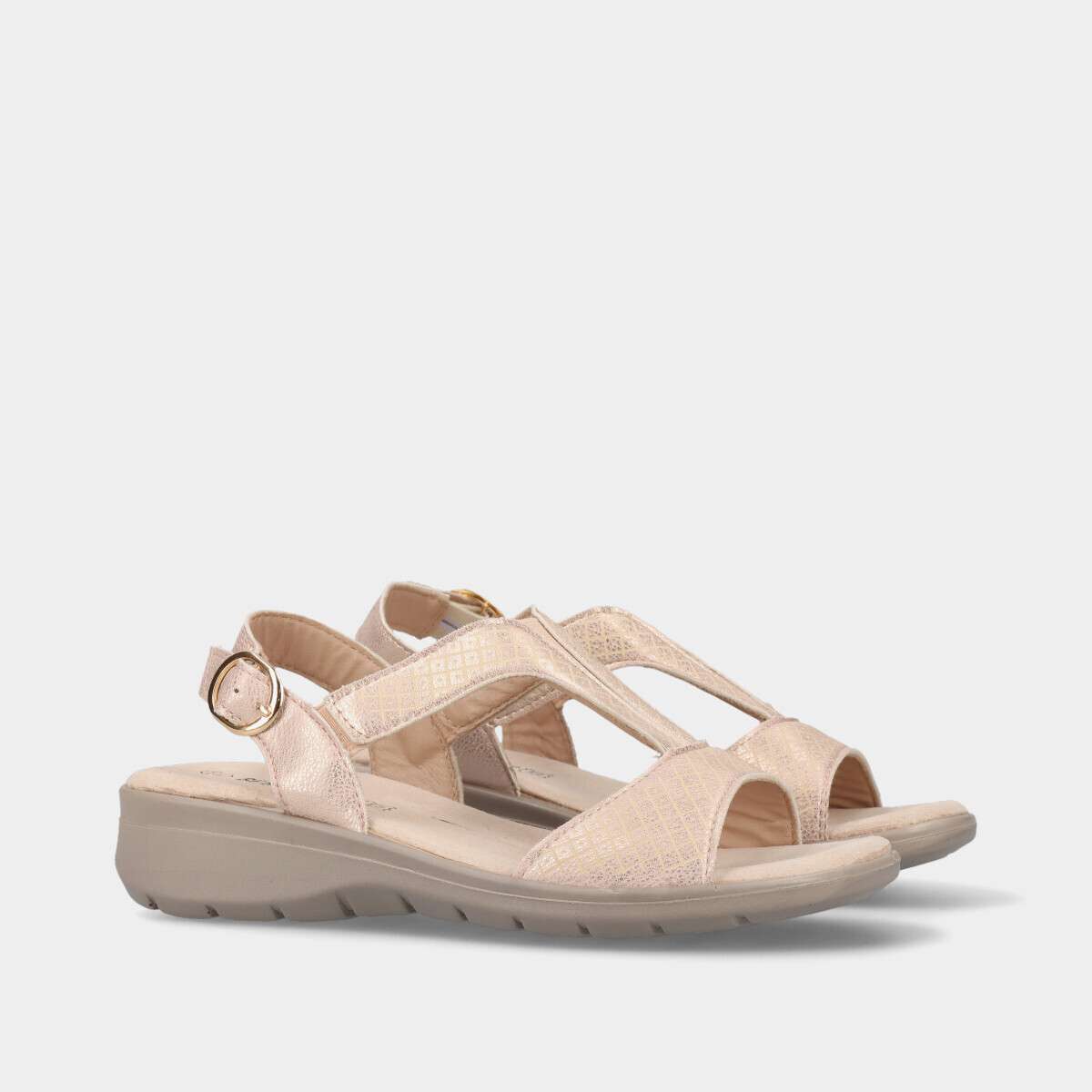 Sandálias confortáveis em bege, com palmilha em pele macia de espuma que garante leveza e bem-estar. Uma escolha ideal para um look de verão elegante.