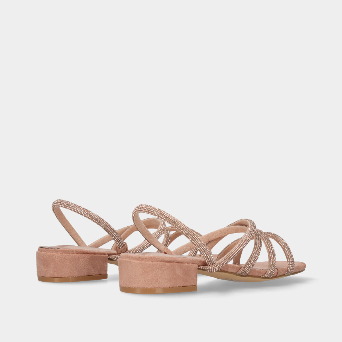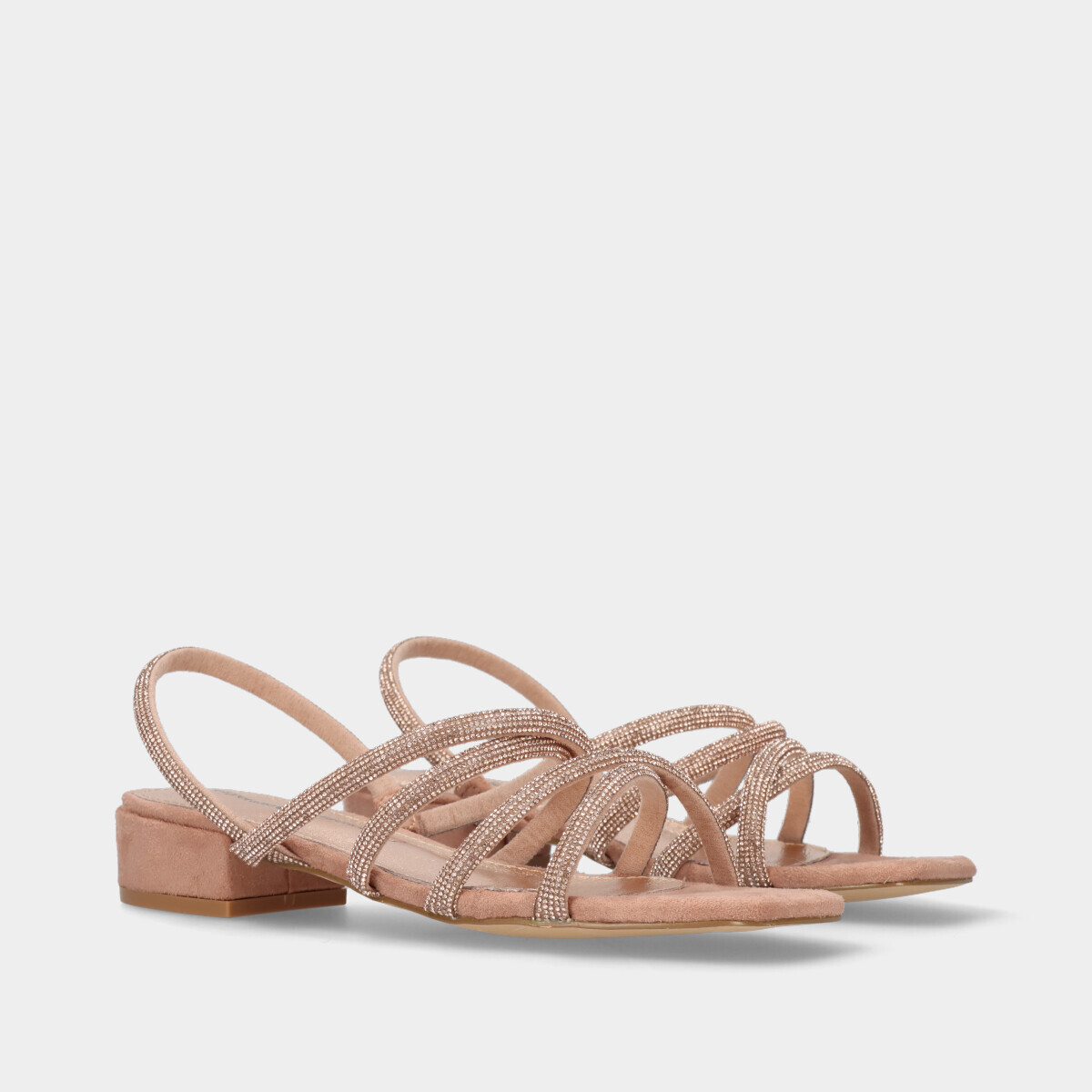Adicione um toque de elegância ao seu visual com a nossa deslumbrante sandália com tiras em cristais em nude.