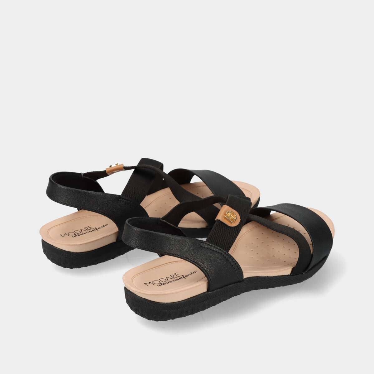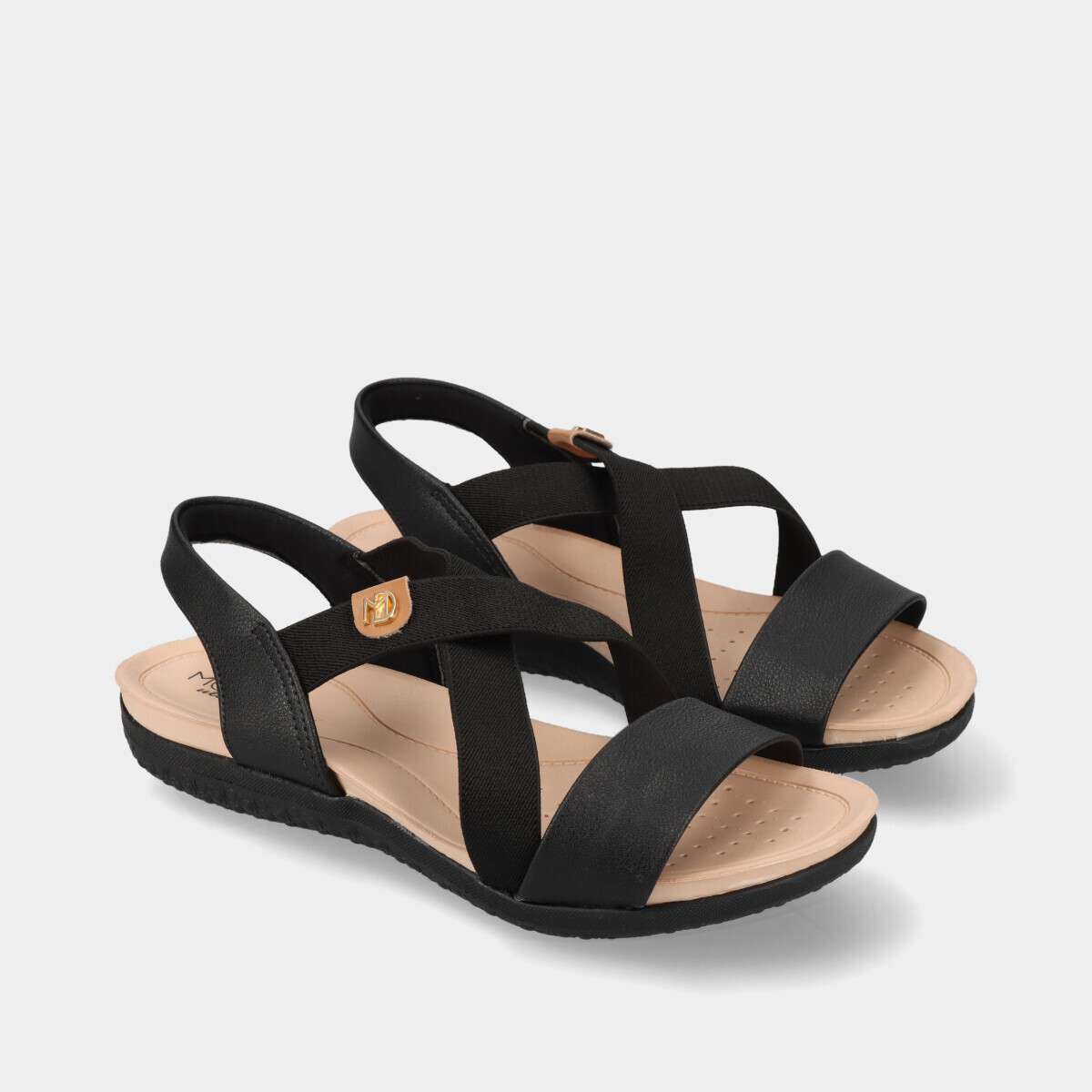 Sandália confortável em preto, com elásticos.