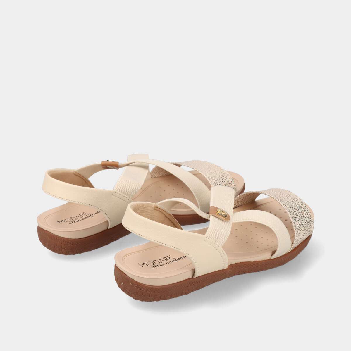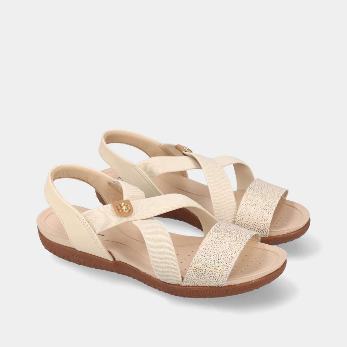 Sandália confortável na cor creme, com elásticos.