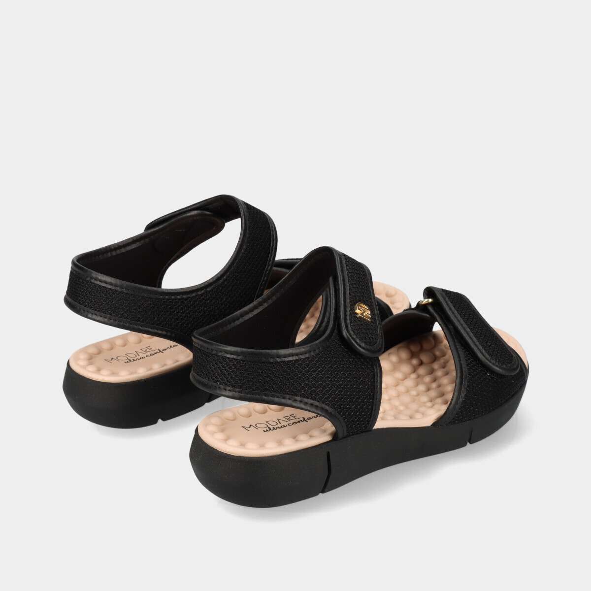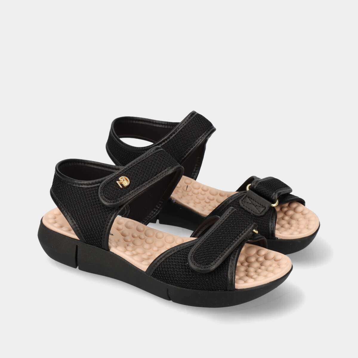 Sandália de conforto na cor preta, com velcros ajustáveis.