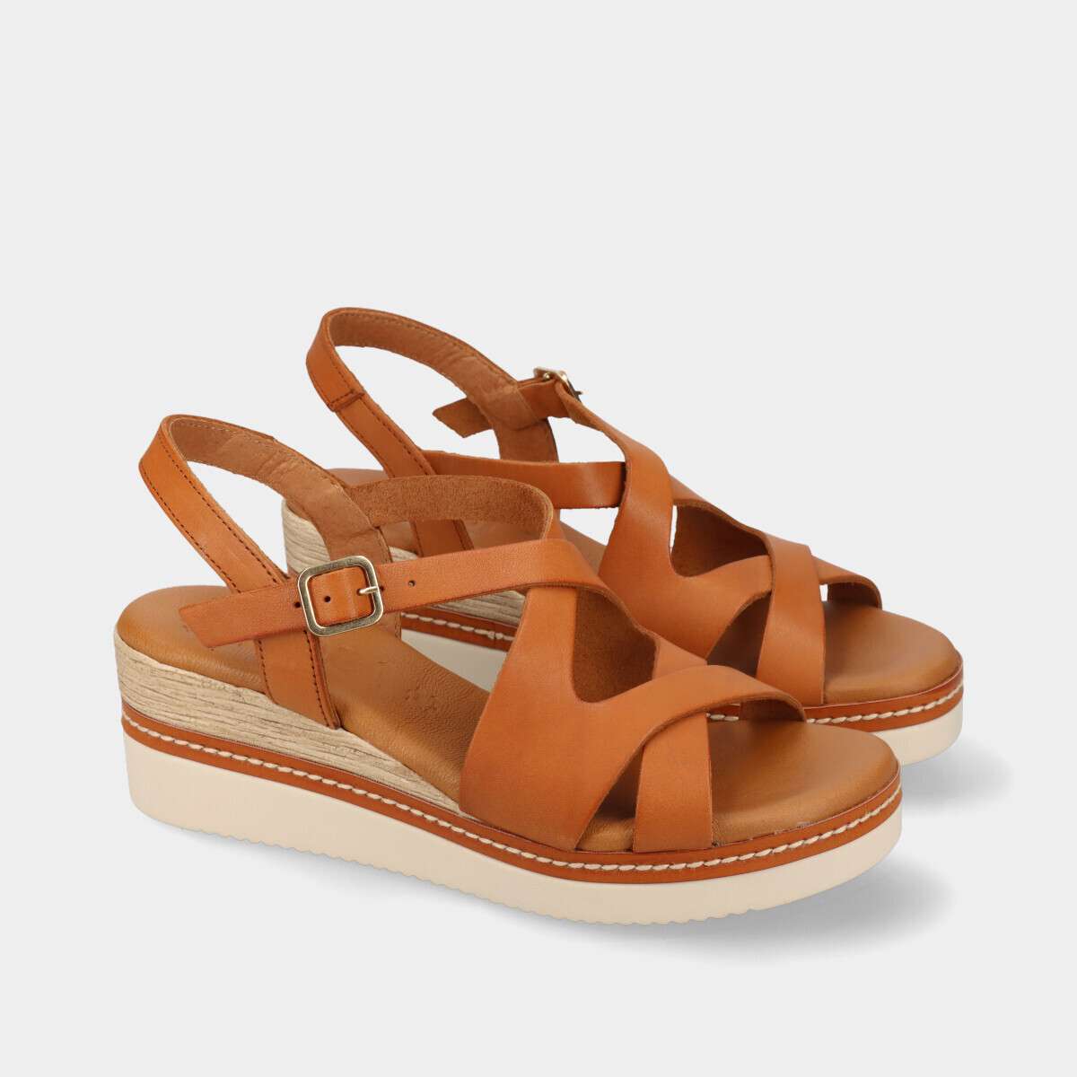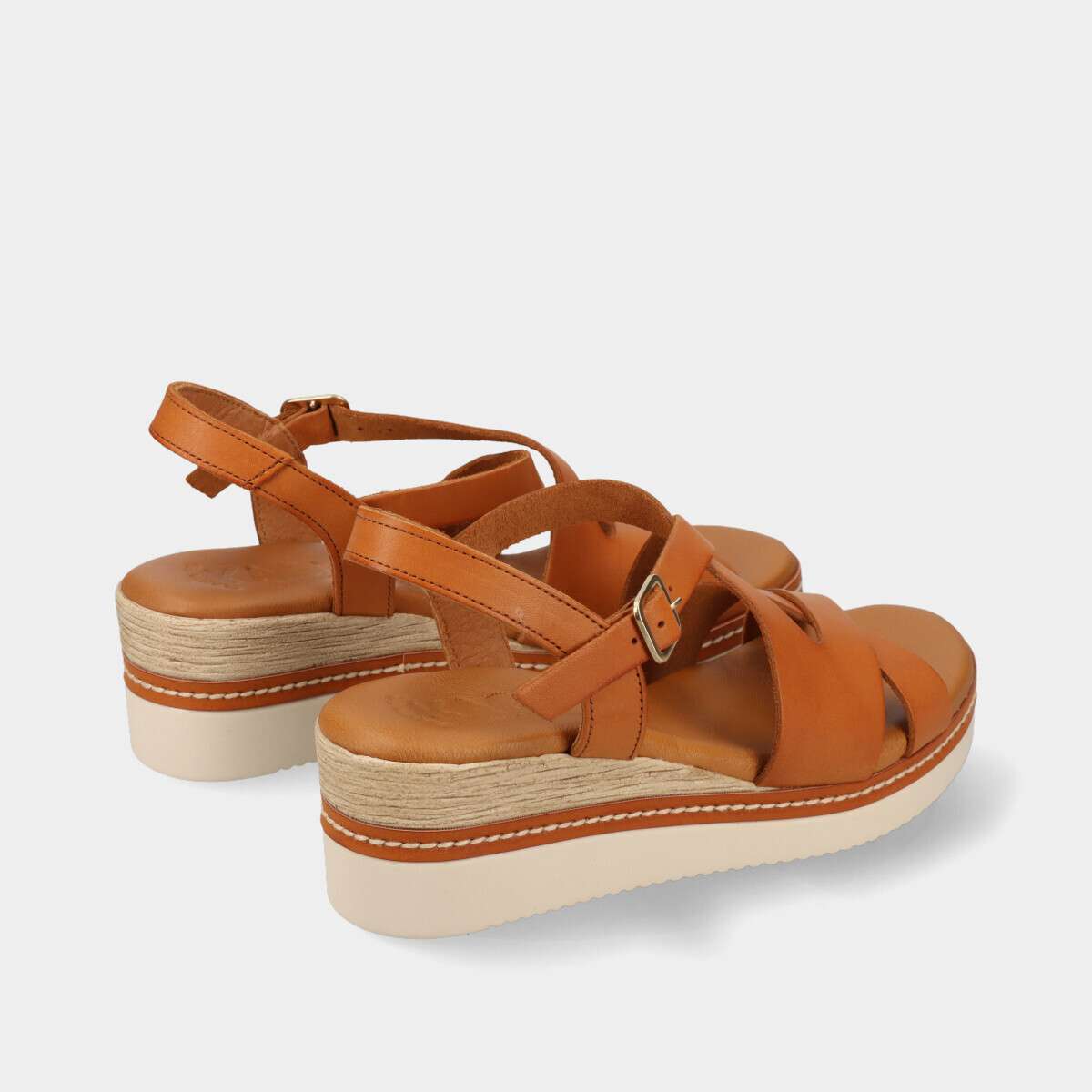 Sandálias confortáveis em camel, com palmilha em espuma macia que garante leveza e bem-estar. Uma escolha ideal para um look de verão elegante.