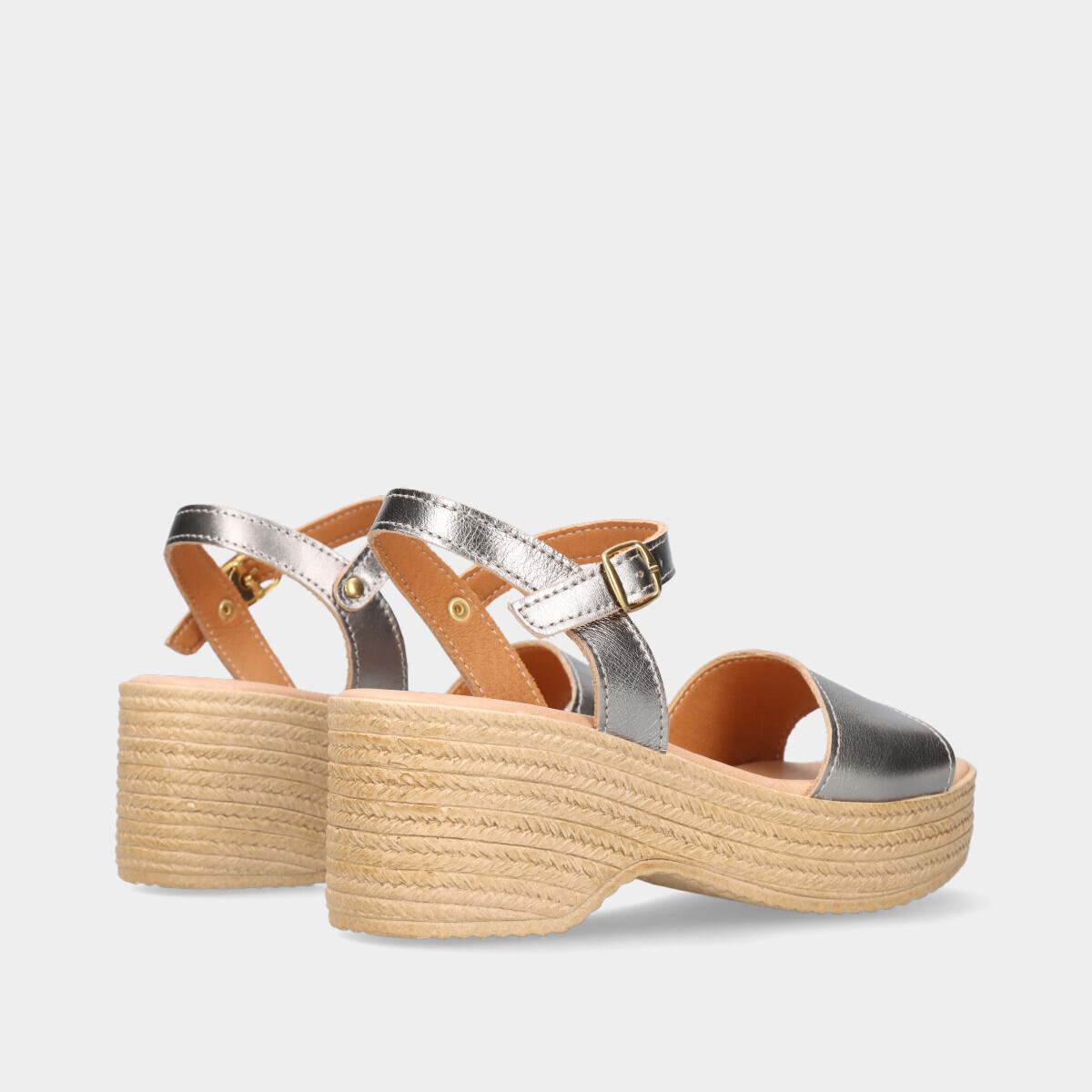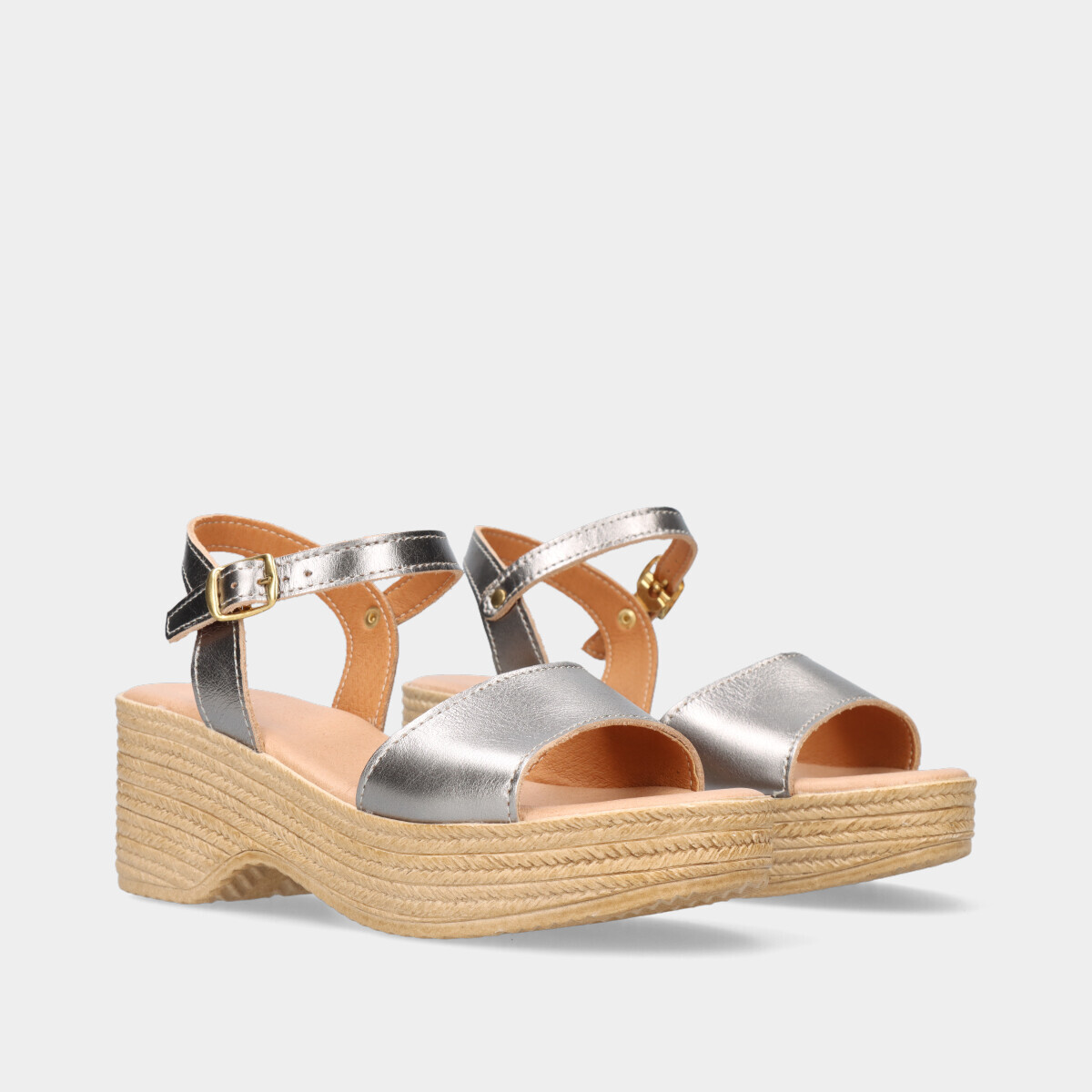 Esta sandália de cunha na cor prateada é a escolha perfeita para um look moderno e sofisticado! Com um design elegante, oferece altura e conforto, ideal para qualquer ocasião. O acabamento metalizado acrescenta um toque de brilho e glamour, tornando esta sandália uma peça indispensável para os dias e noites de verão.