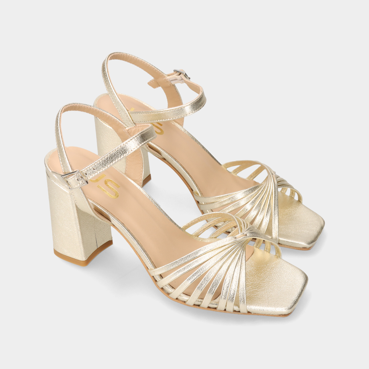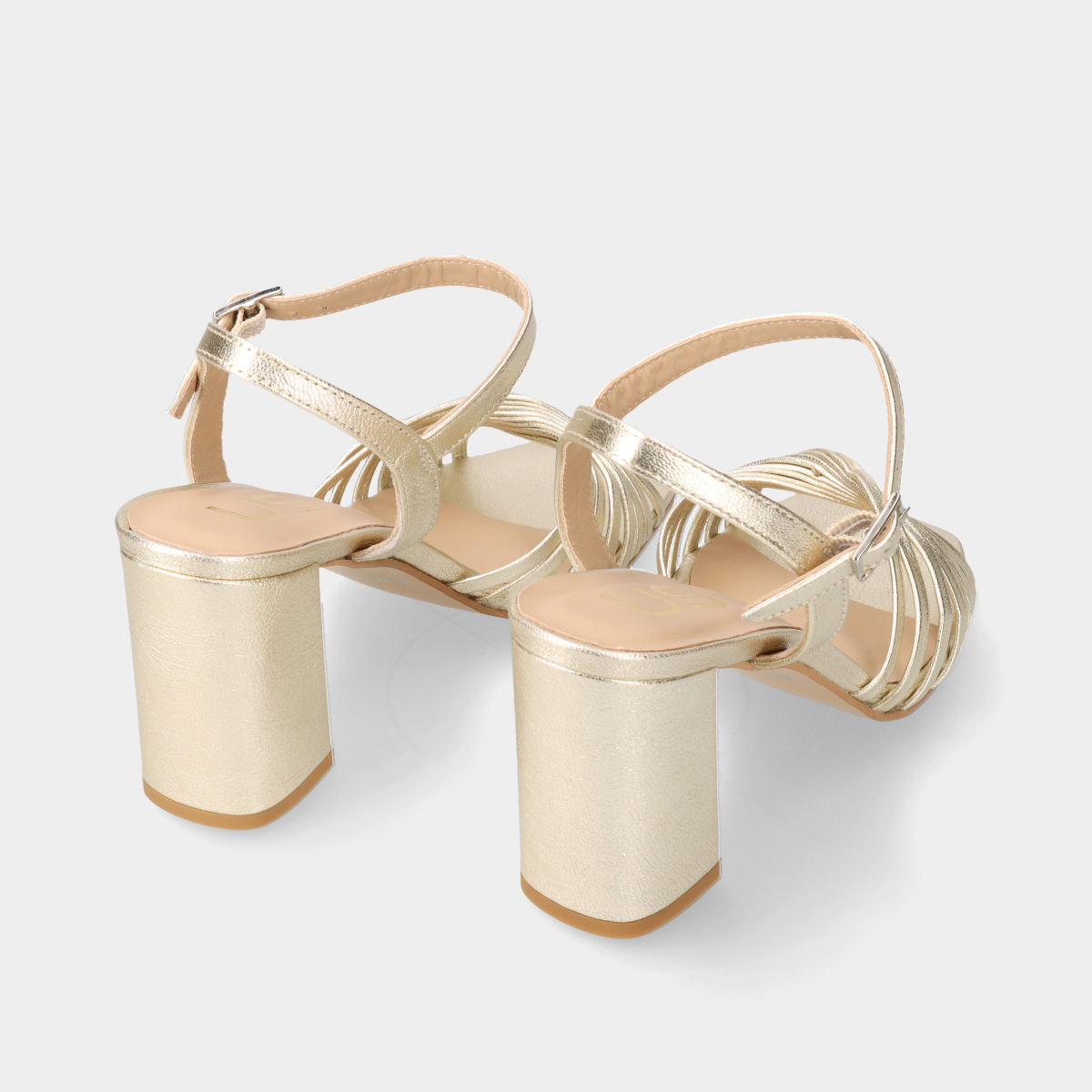 SANDALIA MULHER DE TACAO LARGO EM PELE COM PORMENOR DE TIRAS EM ESPIRAL