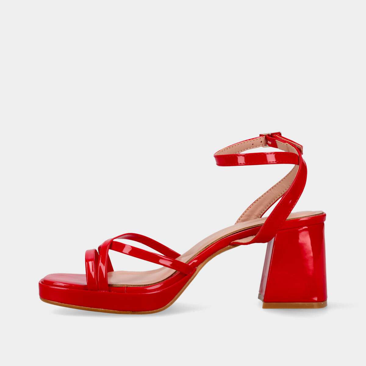 Sandália de mulher na cor vermelha com fivela lateral para fácil ajuste! Cada passo é seguro com o seu salto estável.