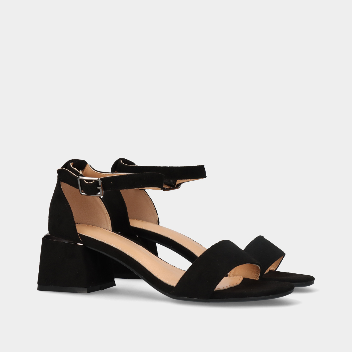 Esta sandália de salto na cor preta, com acabamento em camurça, é perfeita para um toque de elegância discreta! Possui uma tira na frente e fecho de fivela no tornozelo para um ajuste seguro. O detalhe em preteado no salto adiciona um charme sofisticado ao modelo, tornando-o ideal tanto para ocasiões formais quanto para uso diário.