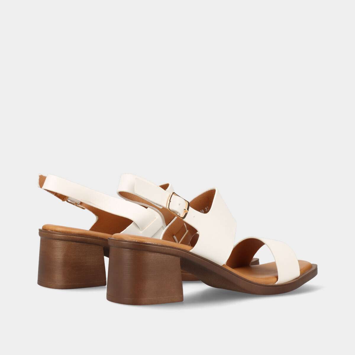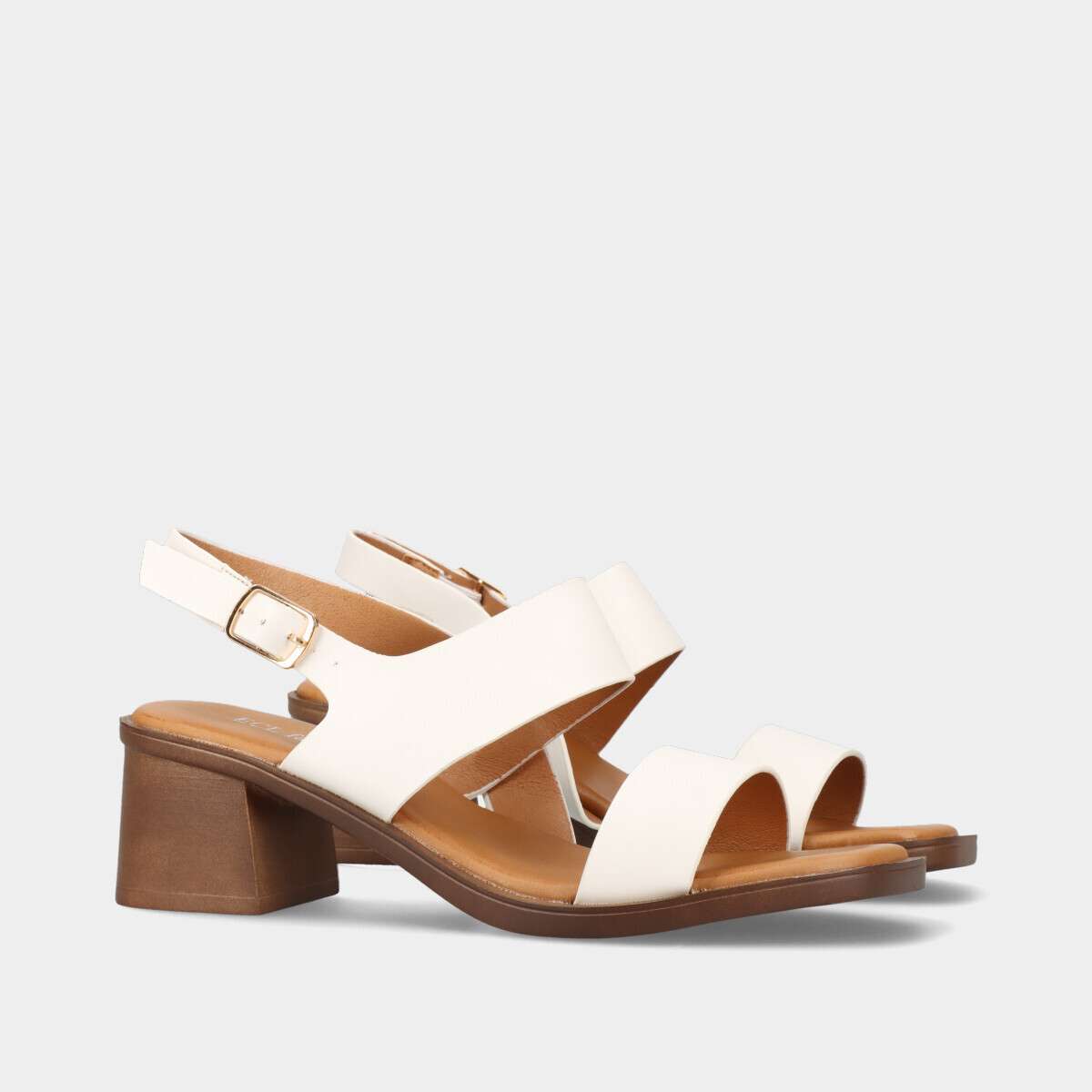Sandálias brancas para mulher, muito leves, com fivela ajustável e palmilha de espuma confortável. Ideais para um look de verão elegante e natural.