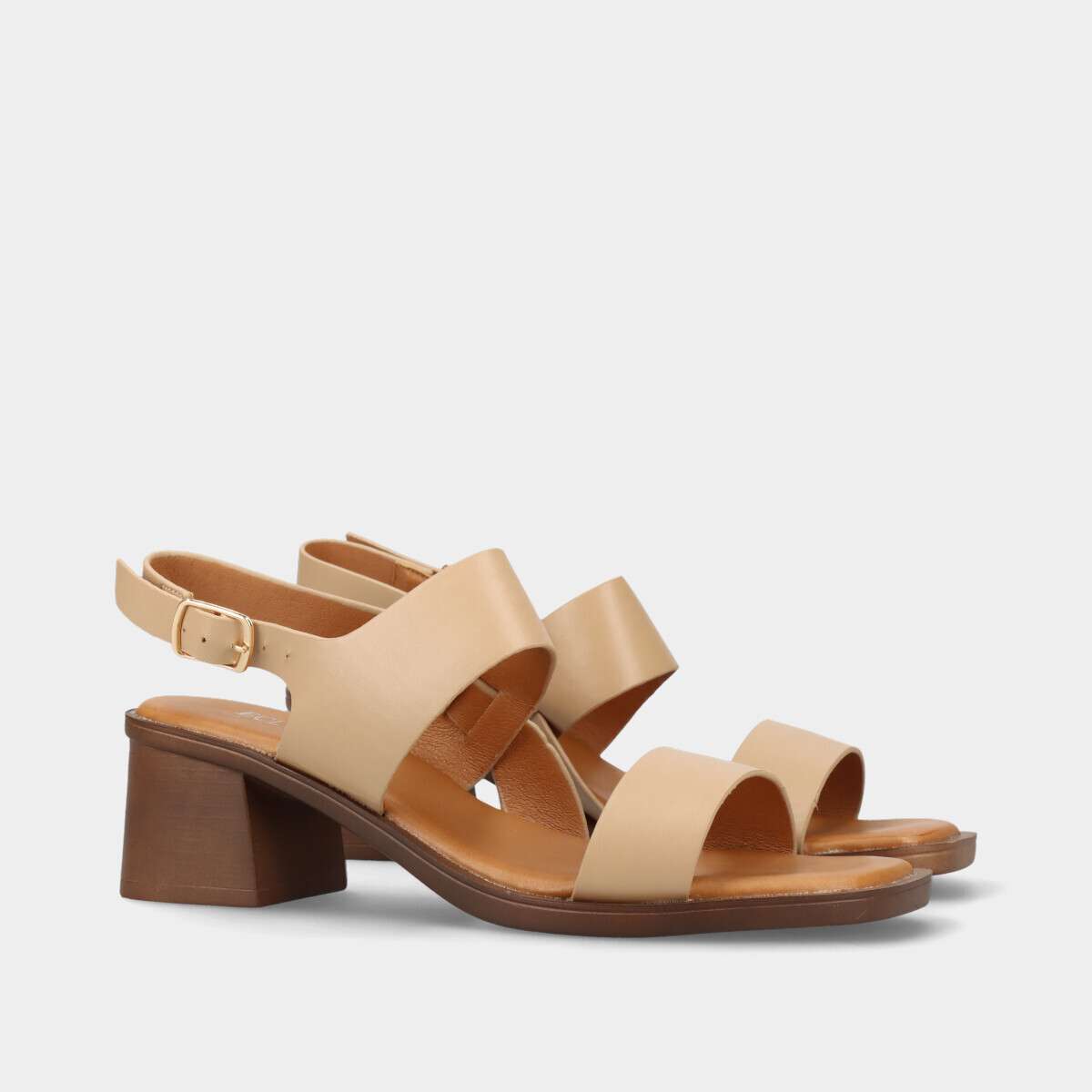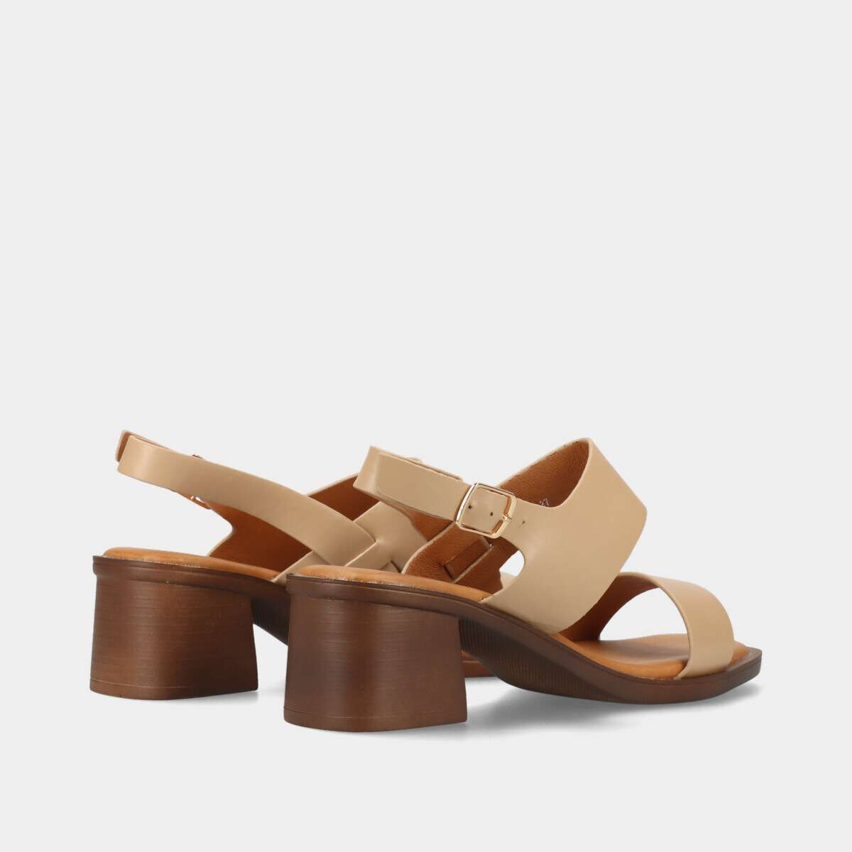 Sandálias beges para mulher, muito leves, com fivela ajustável e palmilha de espuma confortável. Ideais para um look de verão elegante e natural.