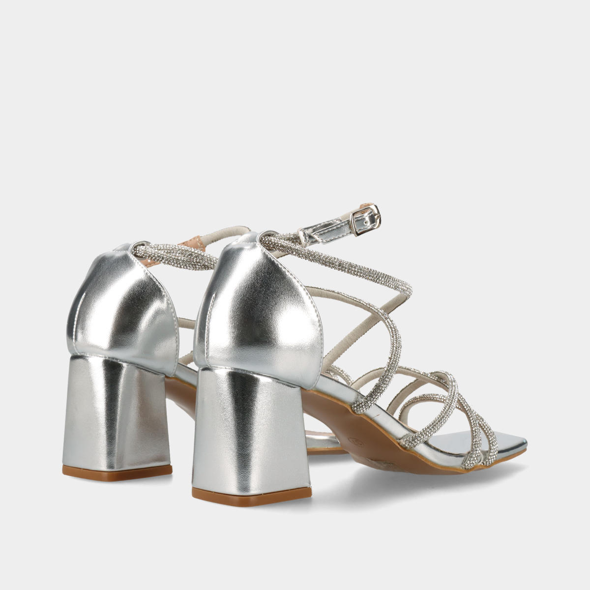 SANDÁLIA DE SALTO COM TIRAS EM CRISTAIS