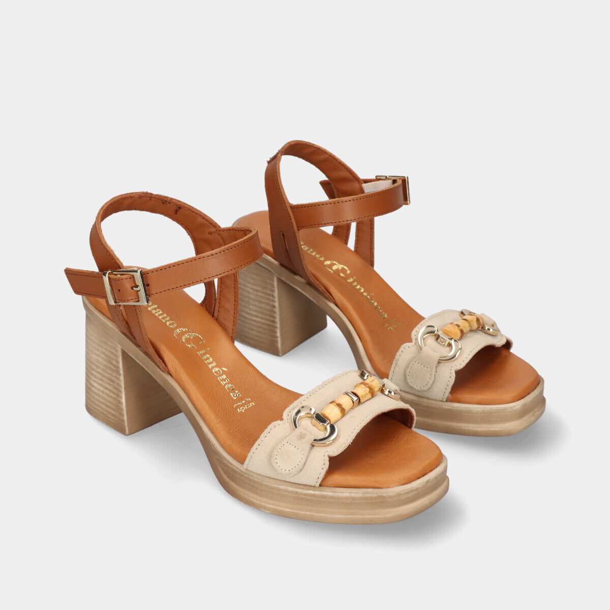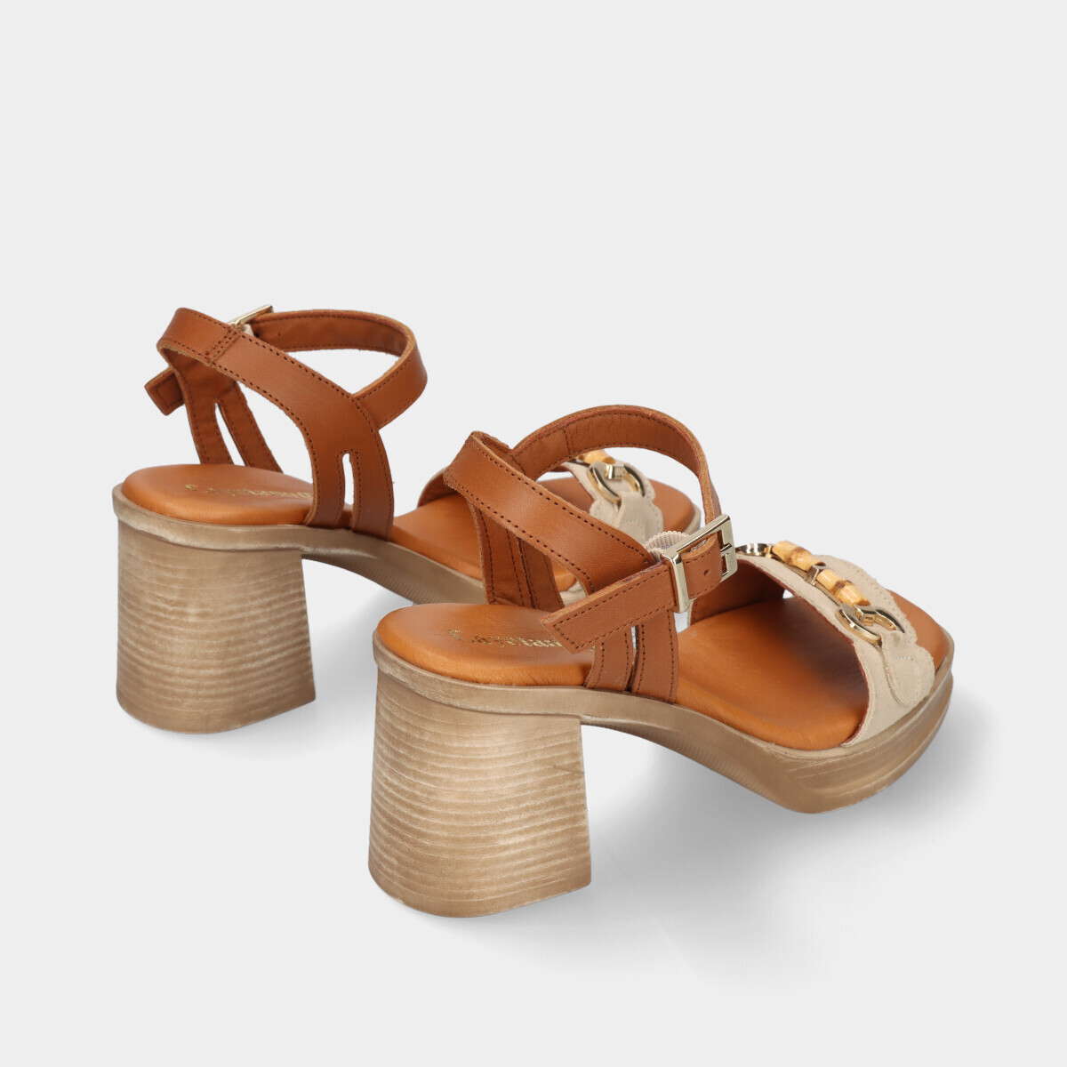 Esta sandália em pele de salto na cor camel é a definição de elegância e versatilidade! Com uma tira do peito do pé em tom bege, esta sandália destaca-se pela sua sofisticação discreta. A fivela oferece um ajuste personalizado, garantindo conforto ao longo do dia. Ideal para complementar qualquer look, desde o mais casual ao mais formal, esta sandália é uma escolha sofisticada para qualquer ocasião.