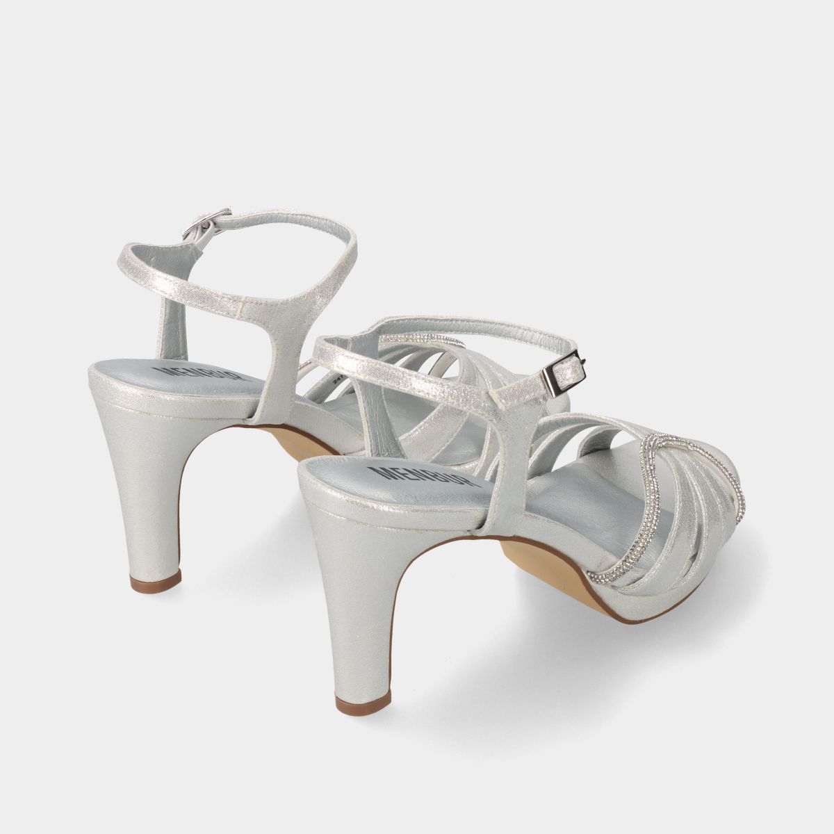 A sandália Menbur Morta, em prata brilhante, é uma verdadeira jóia para os pés!
