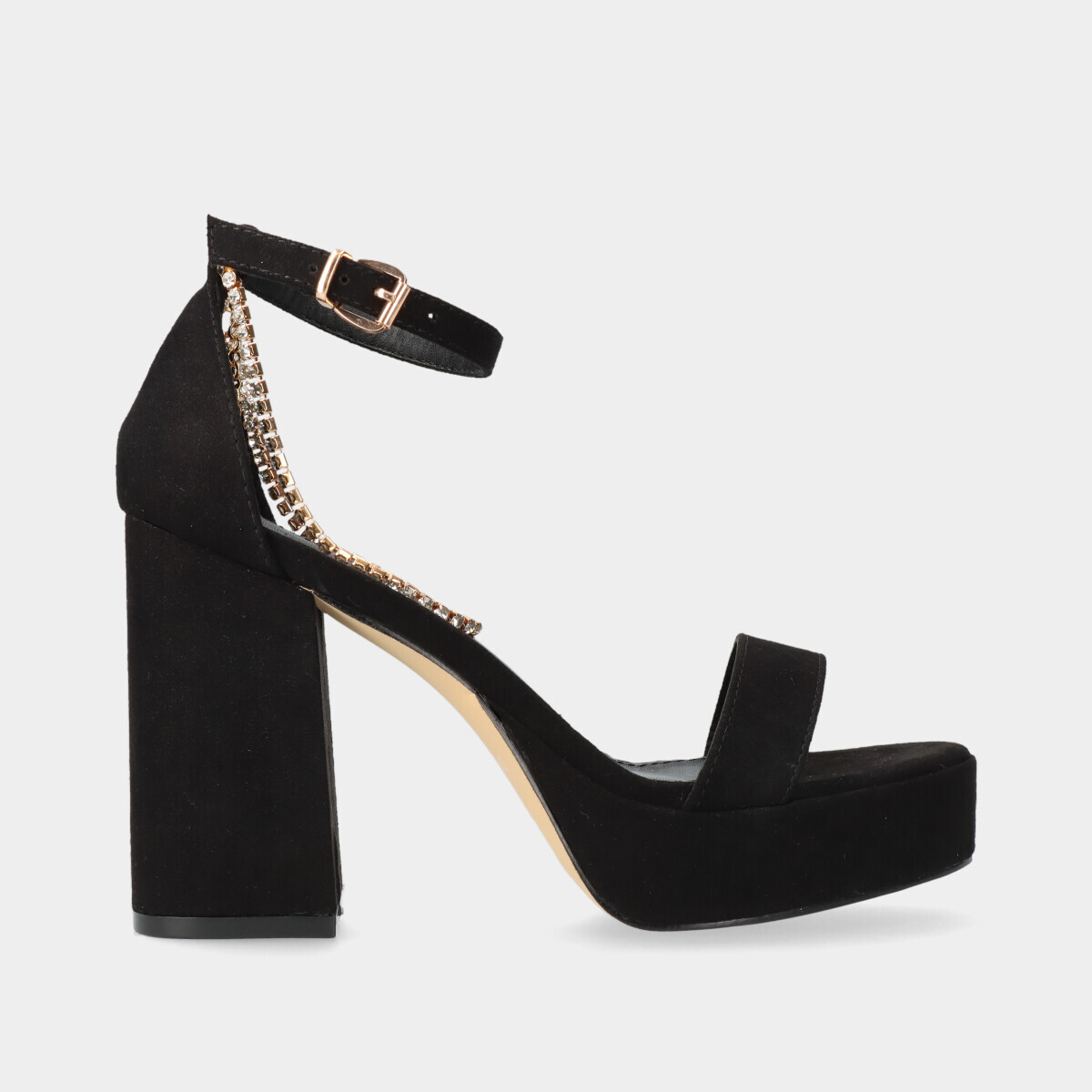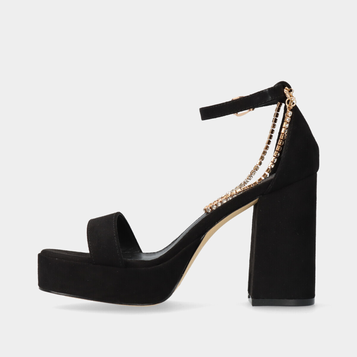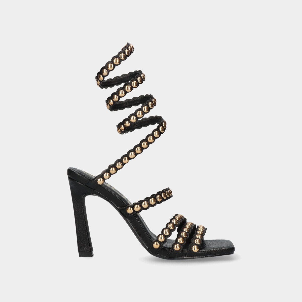 Apresentamos a sandália de salto Menbur Lua na elegante cor preta, adornada com deslumbrantes aplicações douradas! Este modelo exala glamour e sofisticação, garantindo que se destaque em qualquer ocasião. Com uma tira de enrolar à volta da perna, esta sandália oferece um toque extra de elegância e sensualidade ao seu visual. Menbur Lua é o complemento ideal para um look deslumbrante e inesquecível.
