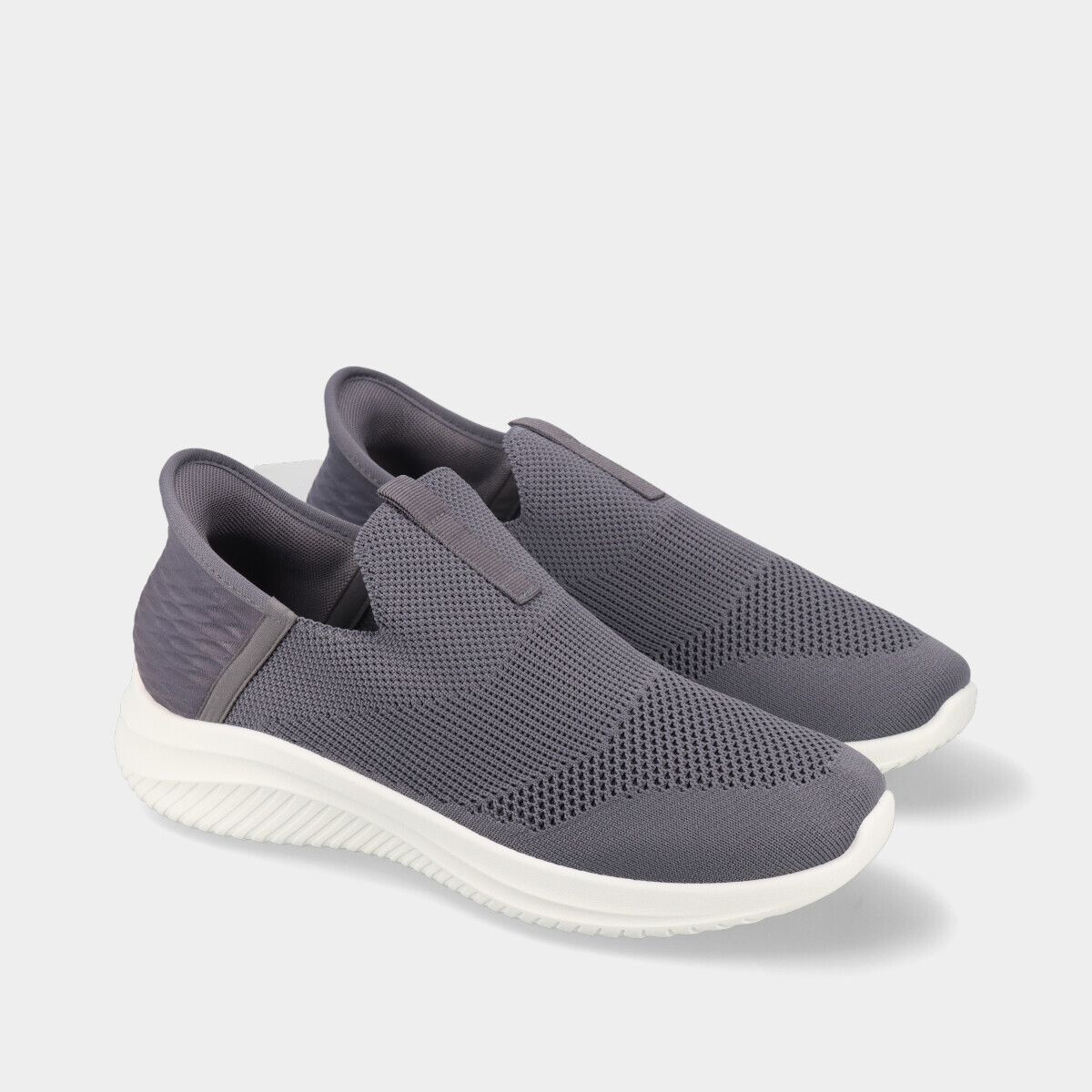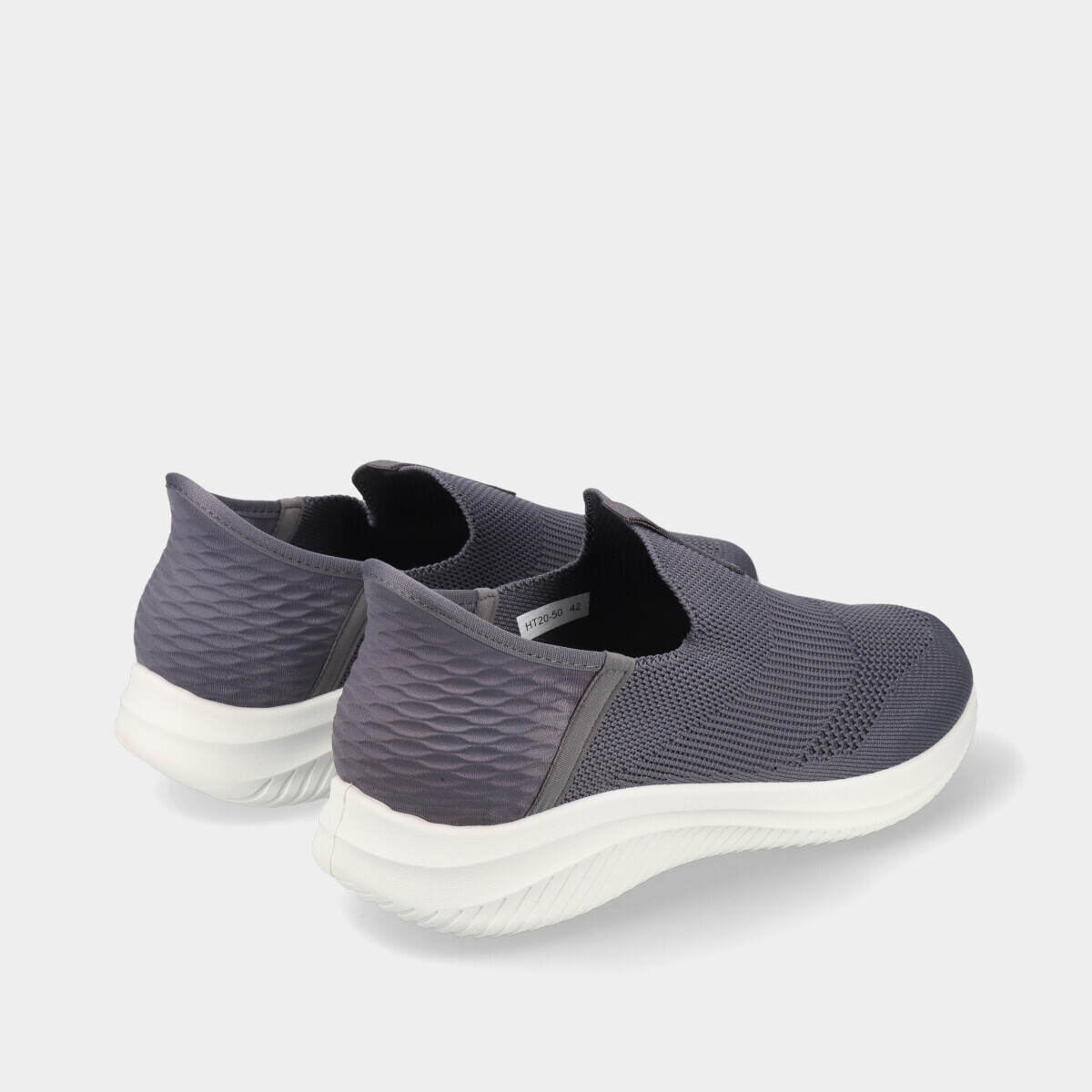 Ténis slip-on para homem em malha respirável cinza, com palmilha removível e confortável, fácil de calçar e ideal para uso casual.