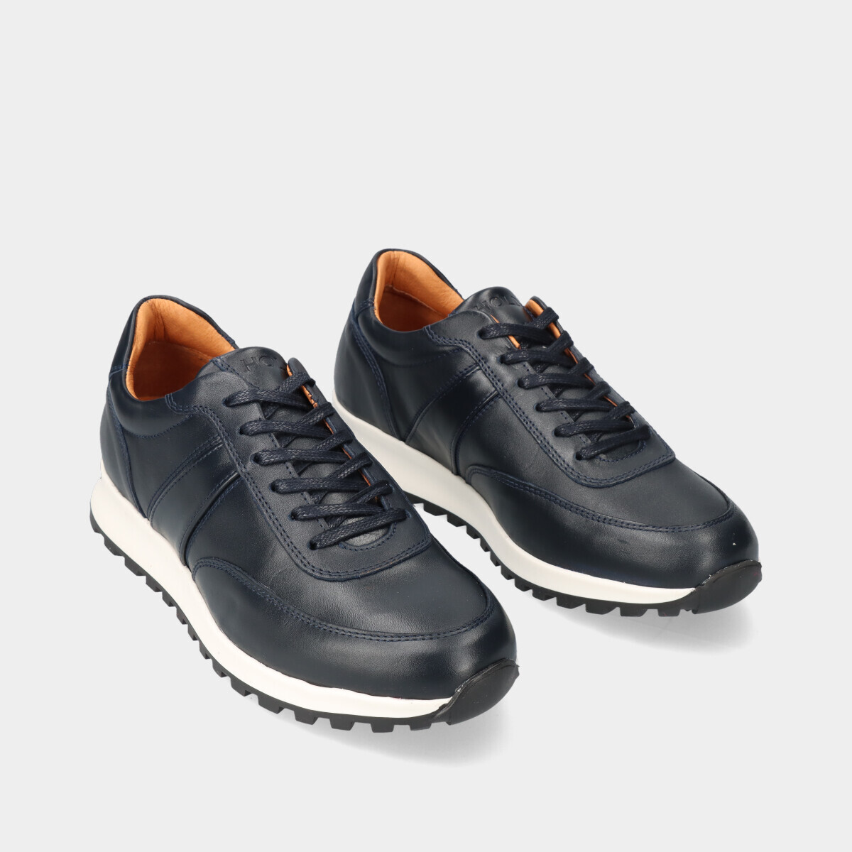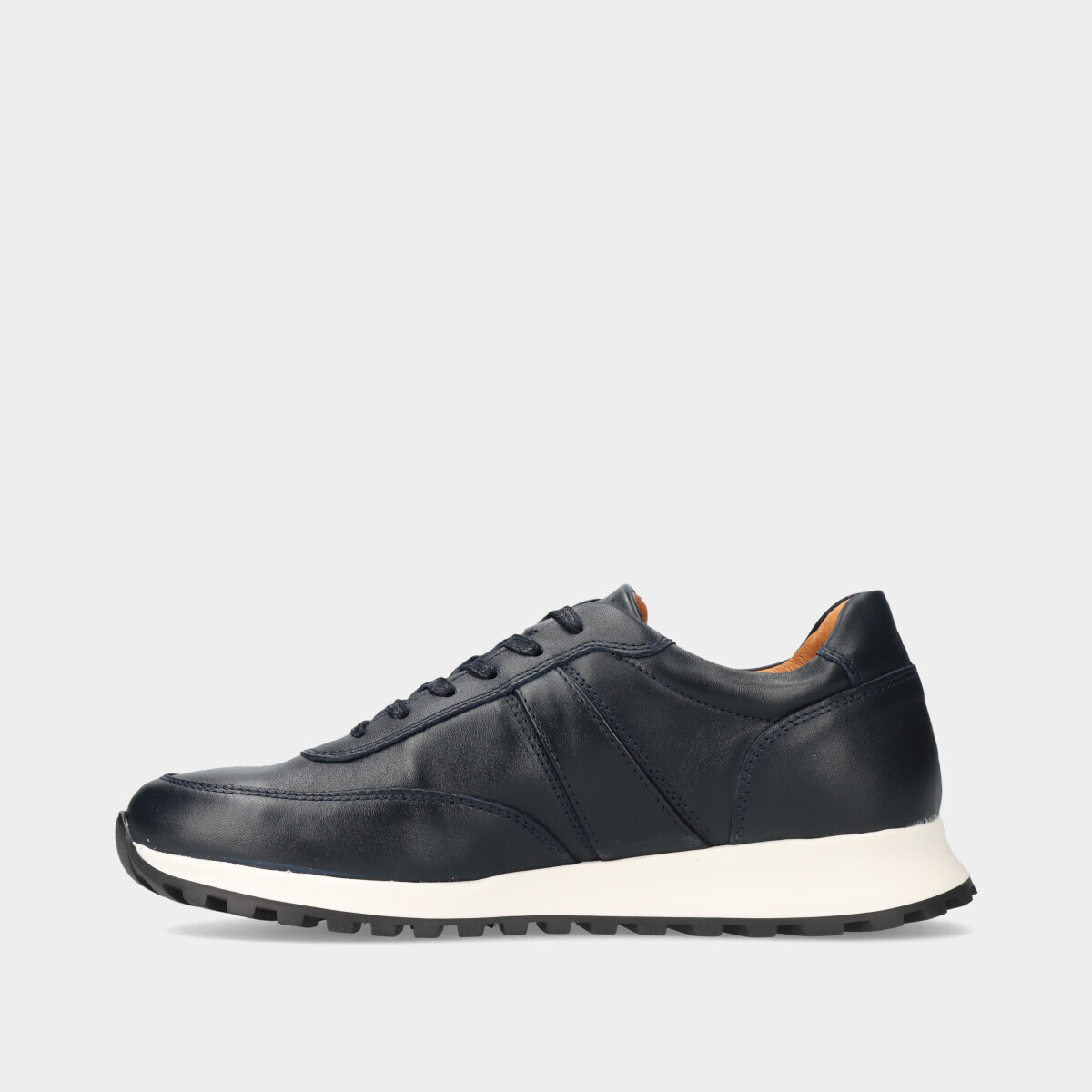 Apresentamos-lhe a sapatilha masculina em pele de cordão na elegante cor azul marinho.