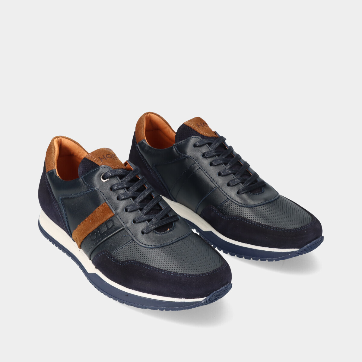 Apresentamos-lhe a nossa sapatilha em pele de cordão na elegante cor azul marinho, perfeita para homens que valorizam o estilo e o conforto.