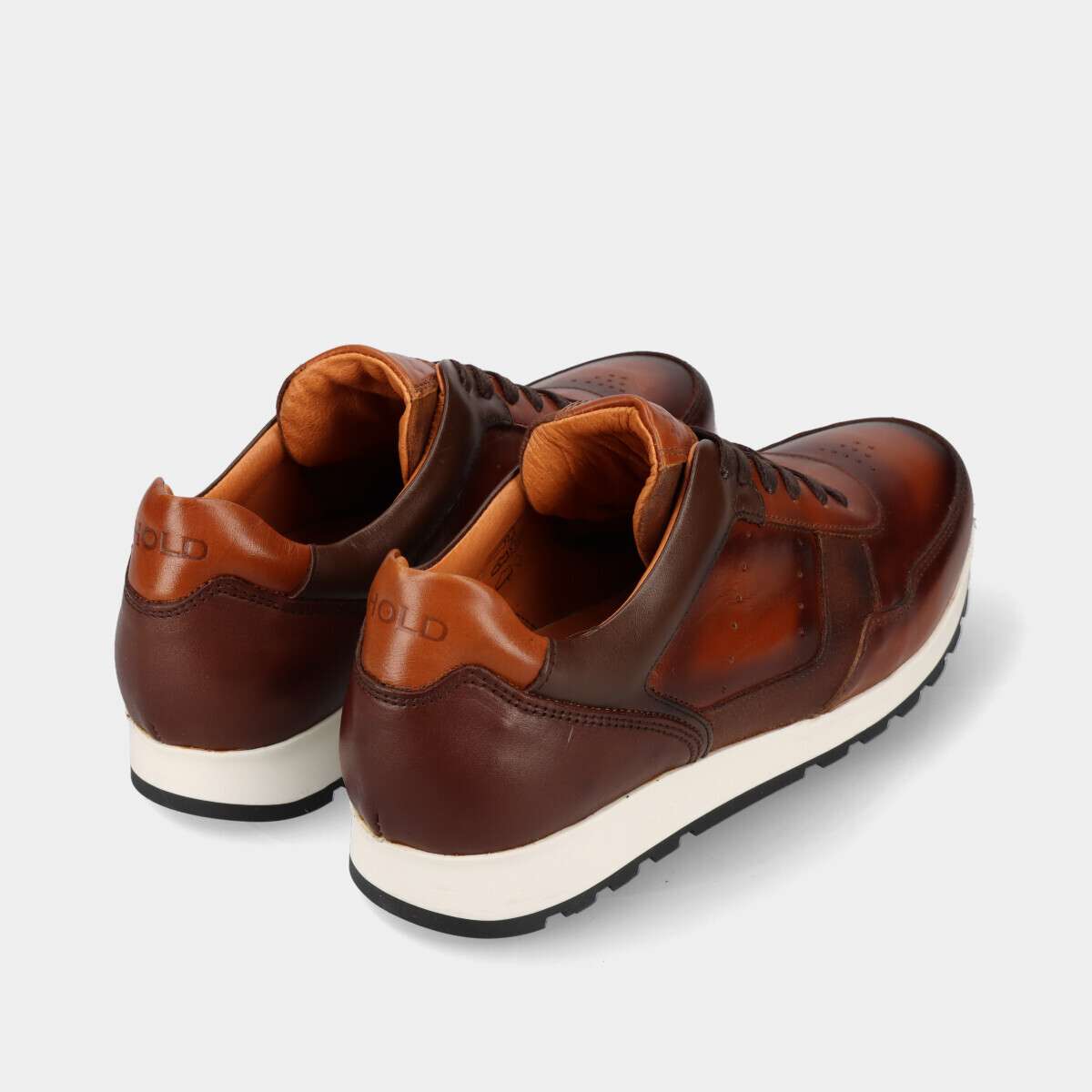 Sapatilha na cor camel com acabamentos na pele. Palmilha forrada a pele removivel.