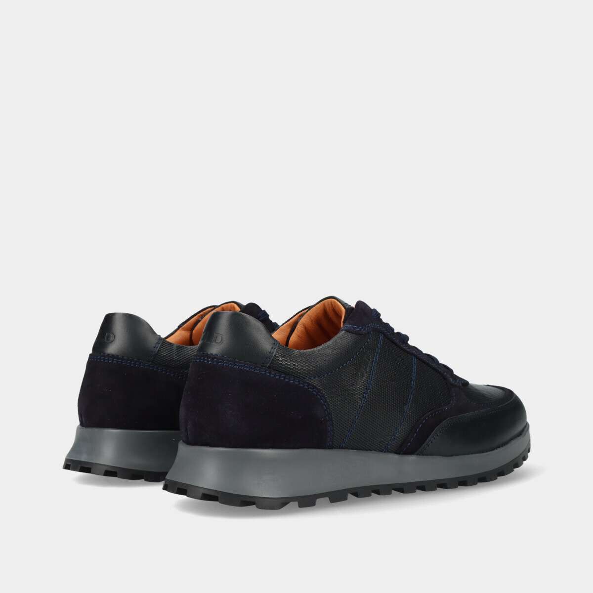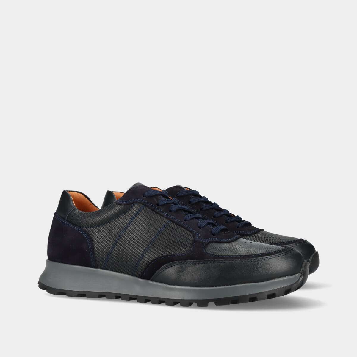Tênis casual em pele na cor azul com pormenores em camurça.