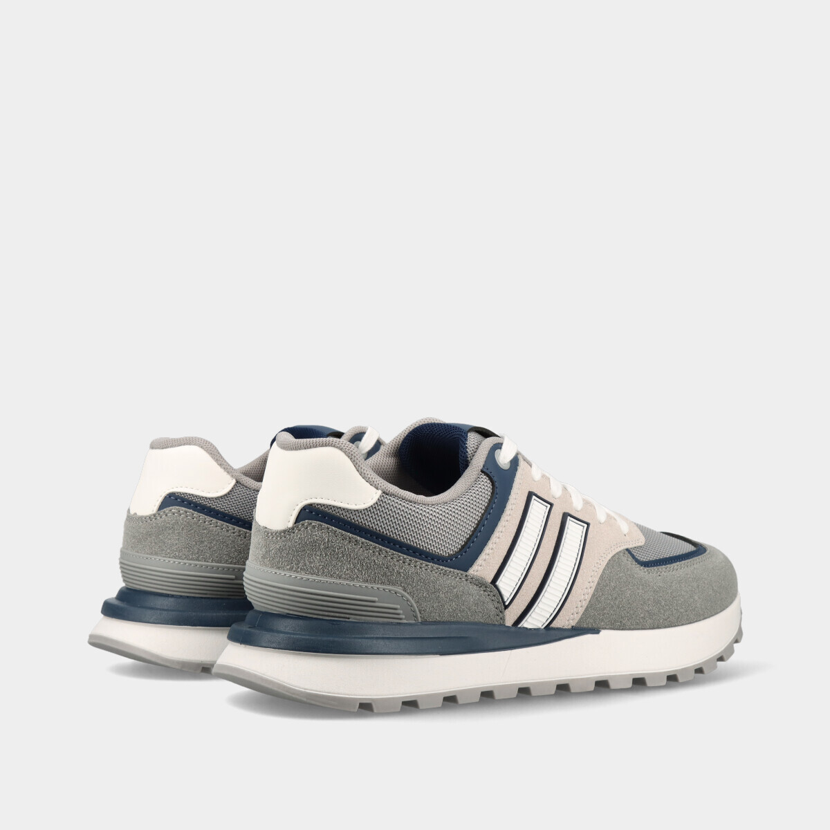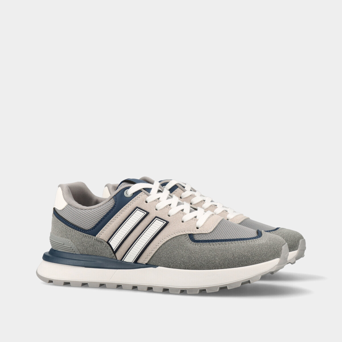 Ténis cinza para homem com detalhes em contraste, confortáveis, com palmilha de espuma removível e rebordos acolchoados. Perfeitos para o dia a dia, passeios, trabalho ou ocasiões informais, combinando estilo, praticidade e conforto.