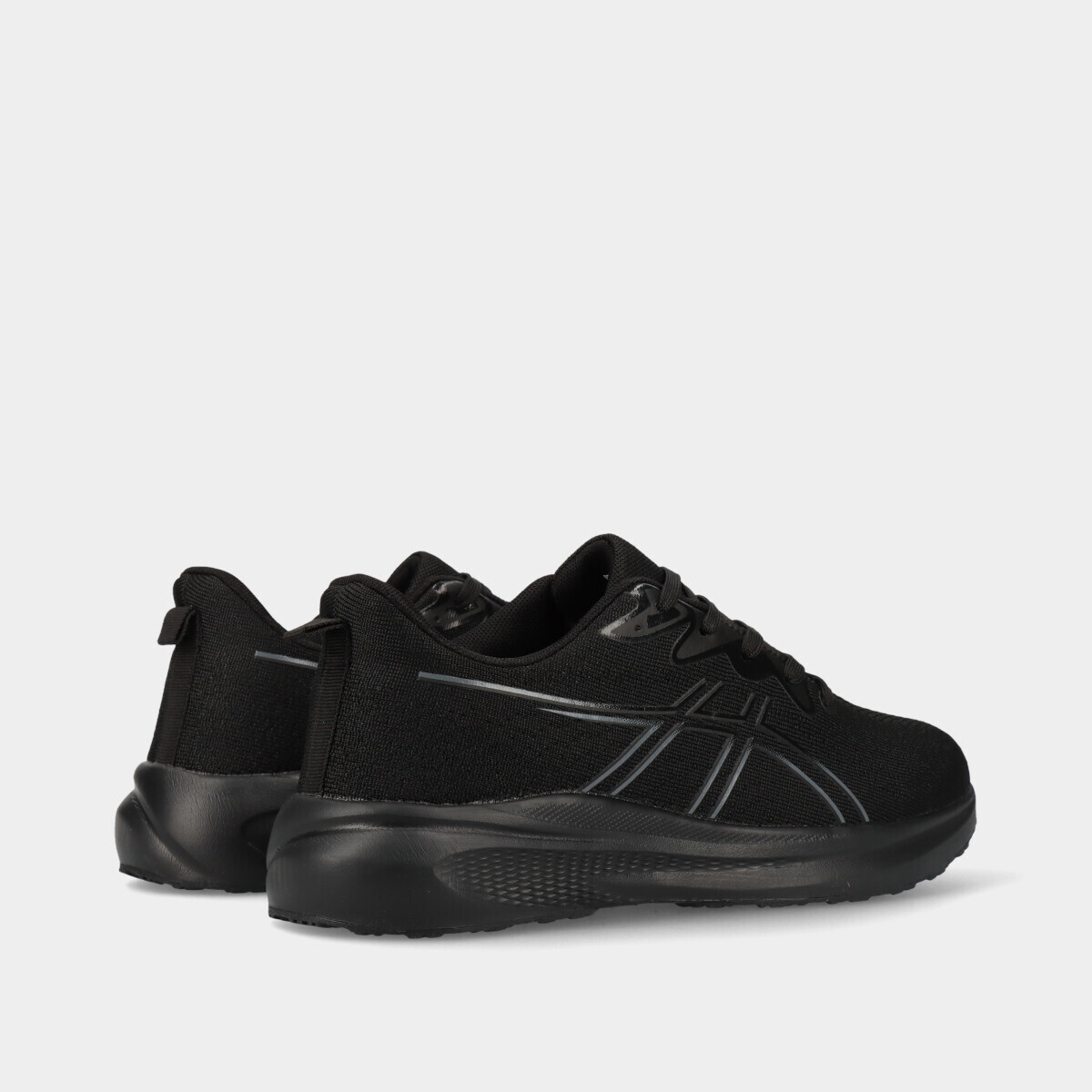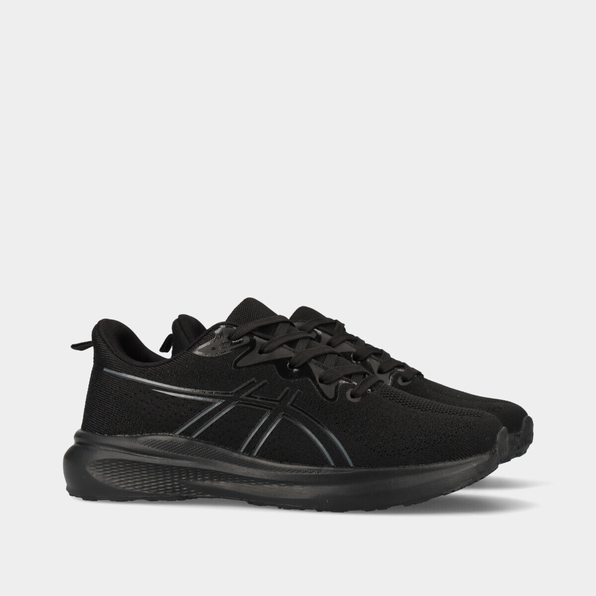 Ténis desportivos para homem em preto com atacadores, malha respirável e palmilha acolchoada removível, ideais para desporto, ginásio, caminhadas ou uso casual.