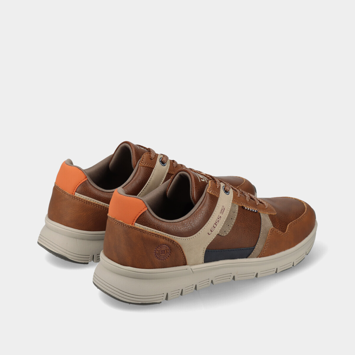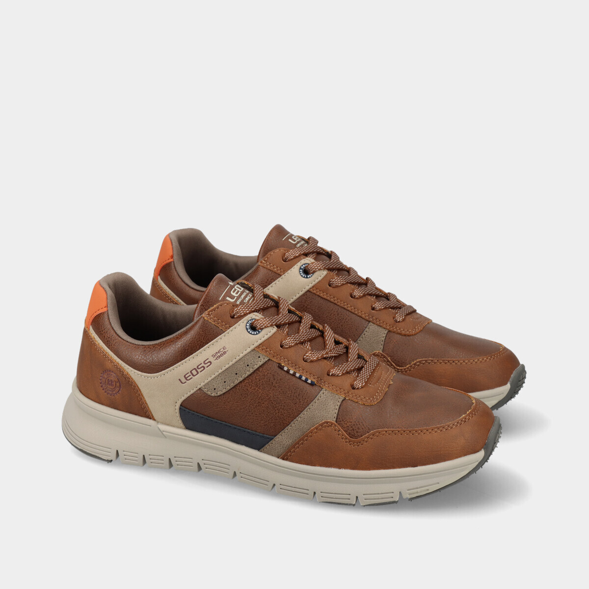 Ténis casuais para homem em camel com atacadores e palmilha acolchoada, ideais para uso diário e estilo casual.