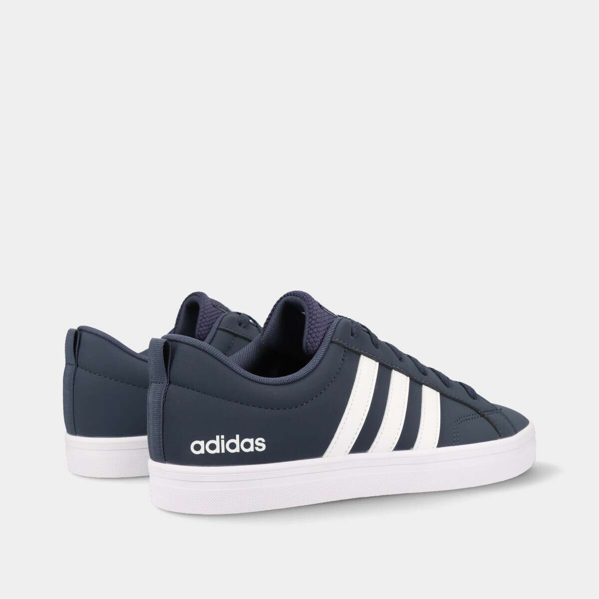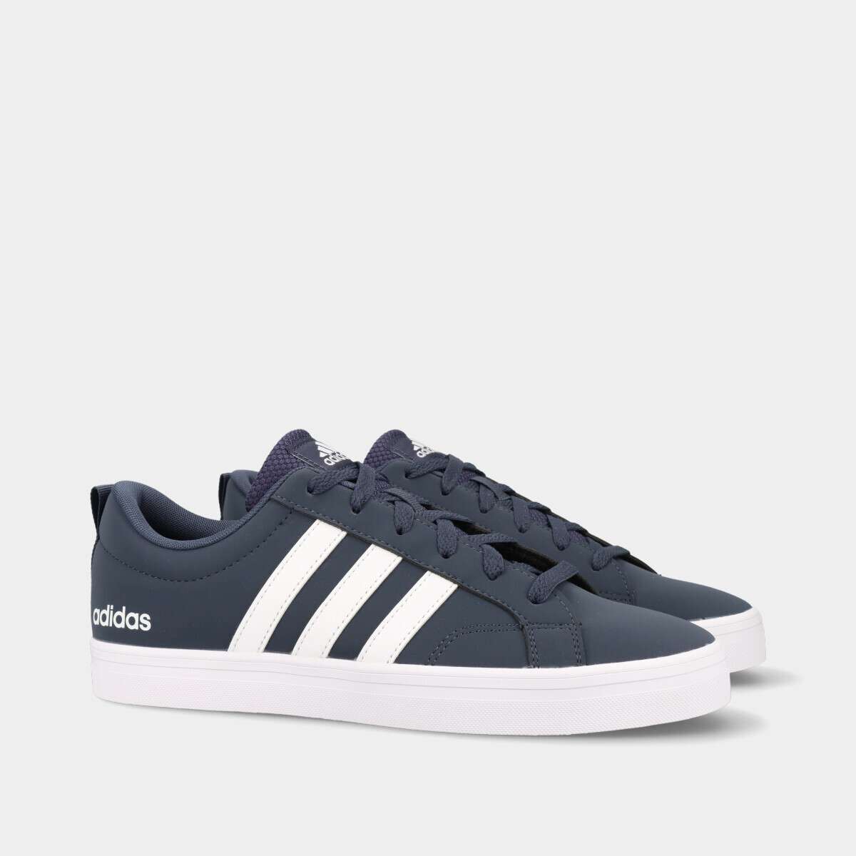 Tênis na cor azul com pormenores em branco, de cordão. Feito com uma série de materiais técnicos reciclados e com um mínimo de 50% de conteúdo reciclado.