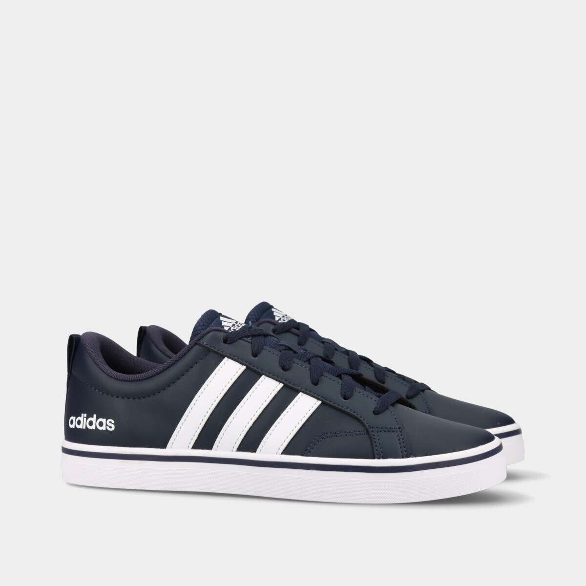 Tênis na cor azul com pormenores em branco, de cordão. Feito com uma série de materiais técnicos reciclados e com um mínimo de 50% de conteúdo reciclado.