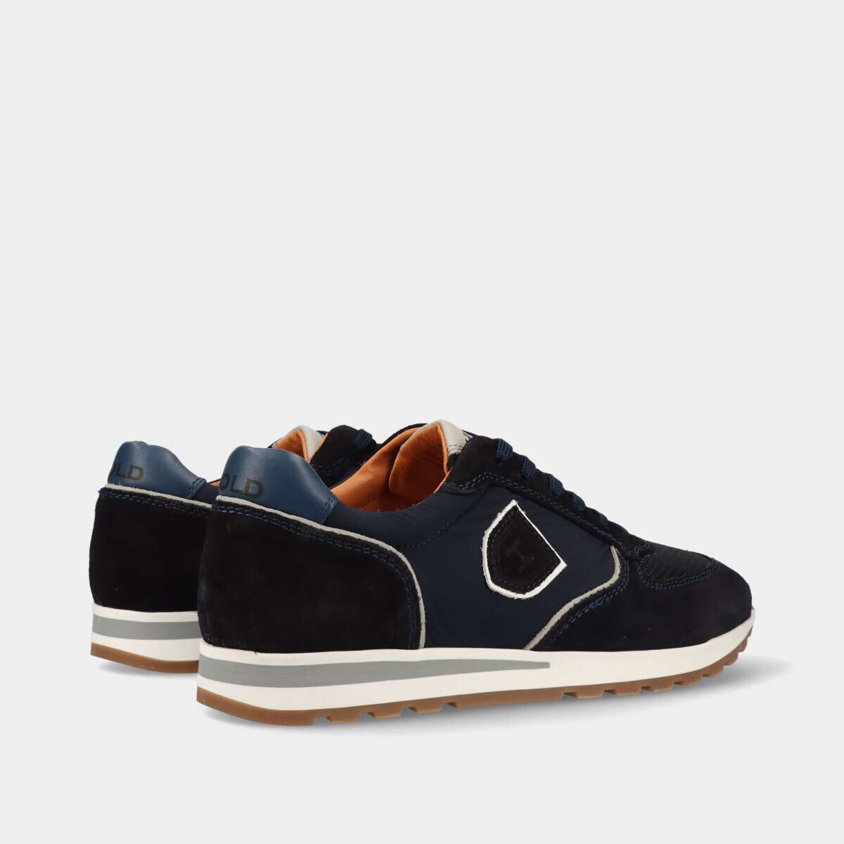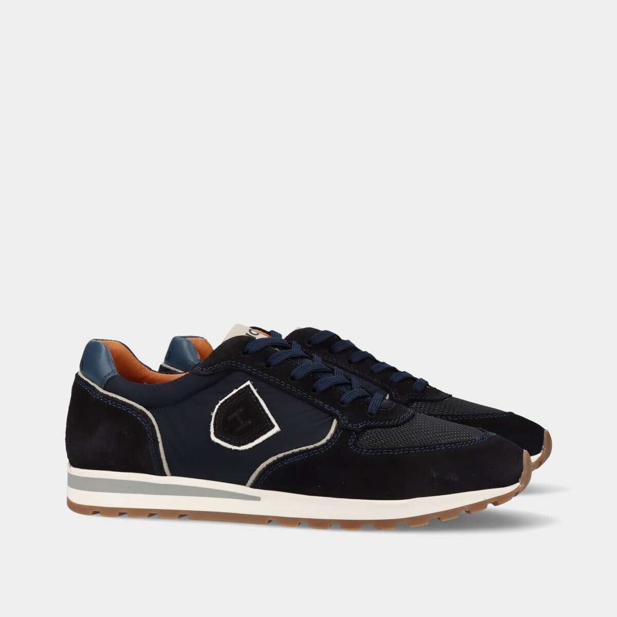 Tênis casual em pele na cor azul com pormenores em camurça.