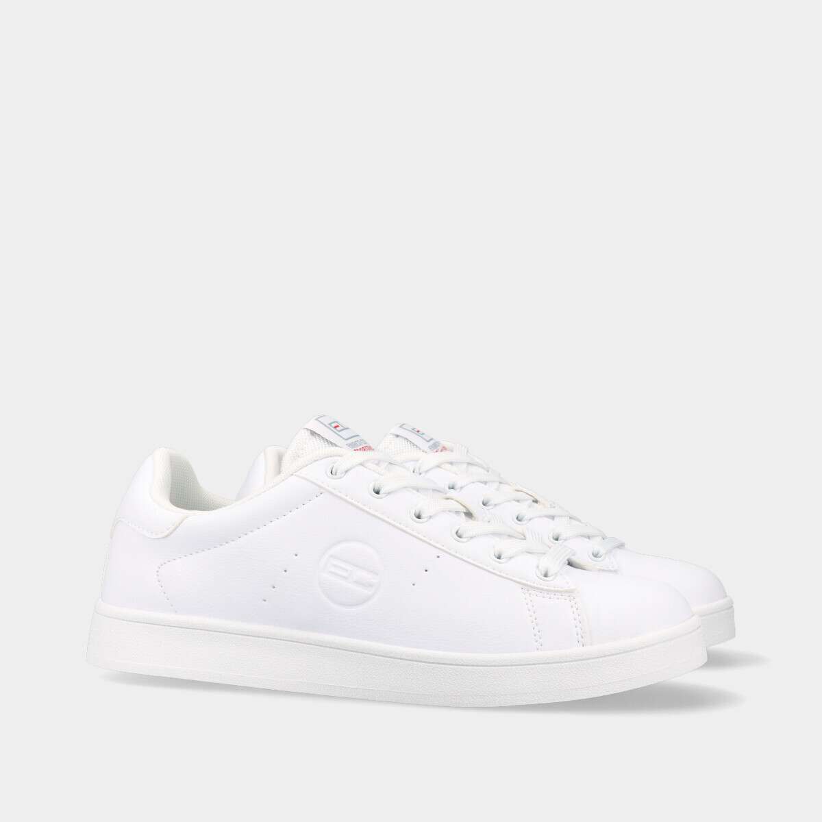 Tênis clean na cor branca, de cordão.