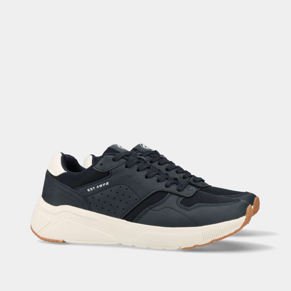 Tênis confortável na cor azul, de cordão.