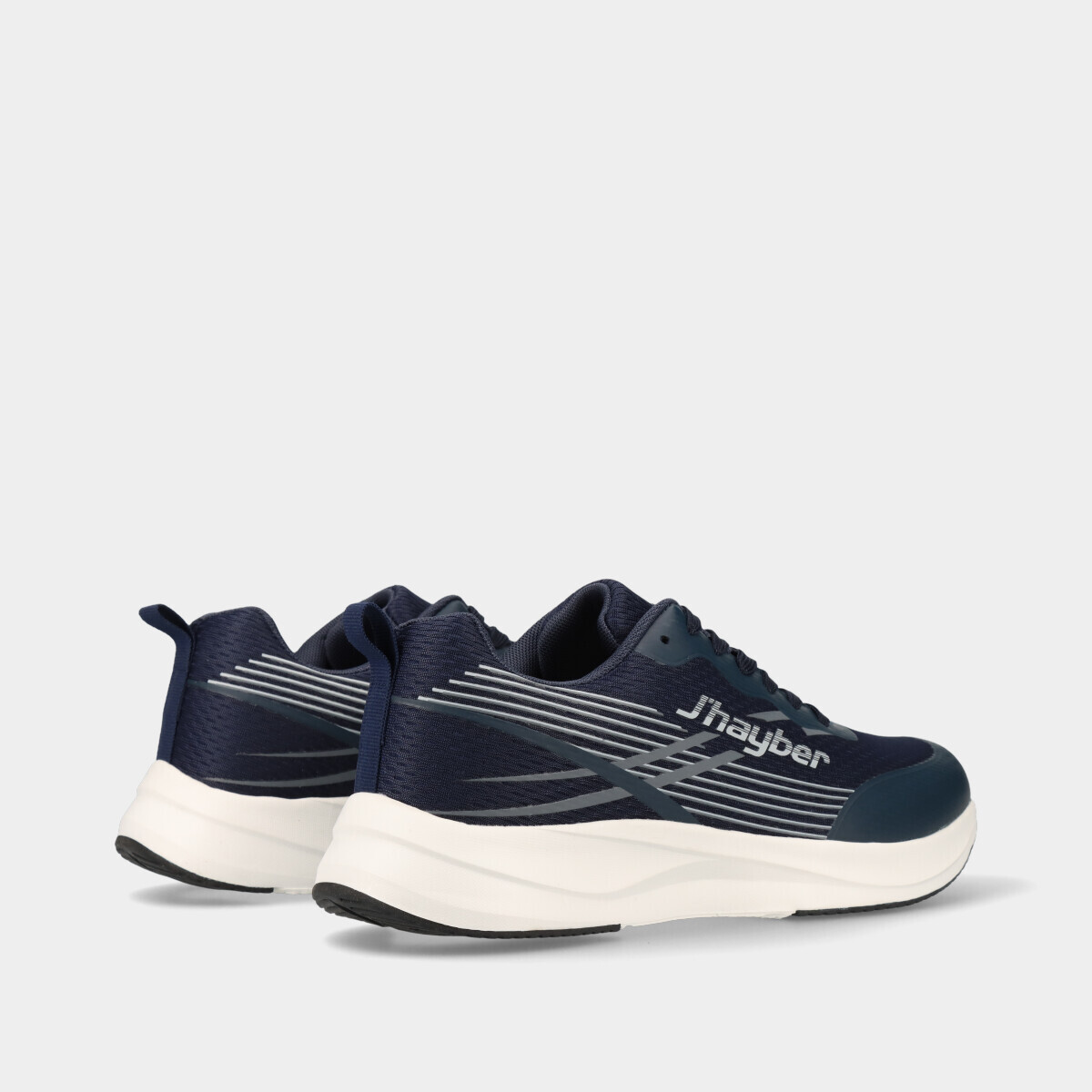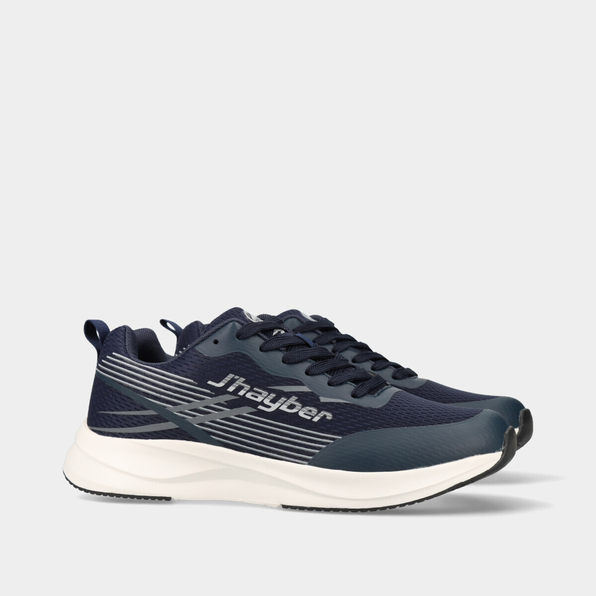 Ténis de corrida para homem em azul com atacadores, design desportivo e estrutura leve para treinos e uso diário. Tecido respirável mantém os pés frescos, enquanto a malha flexível melhora a adaptabilidade e oferece conforto duradouro em cada passo.