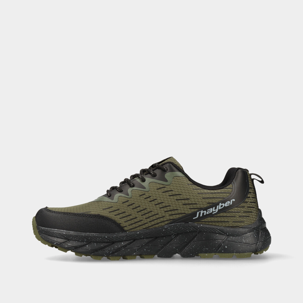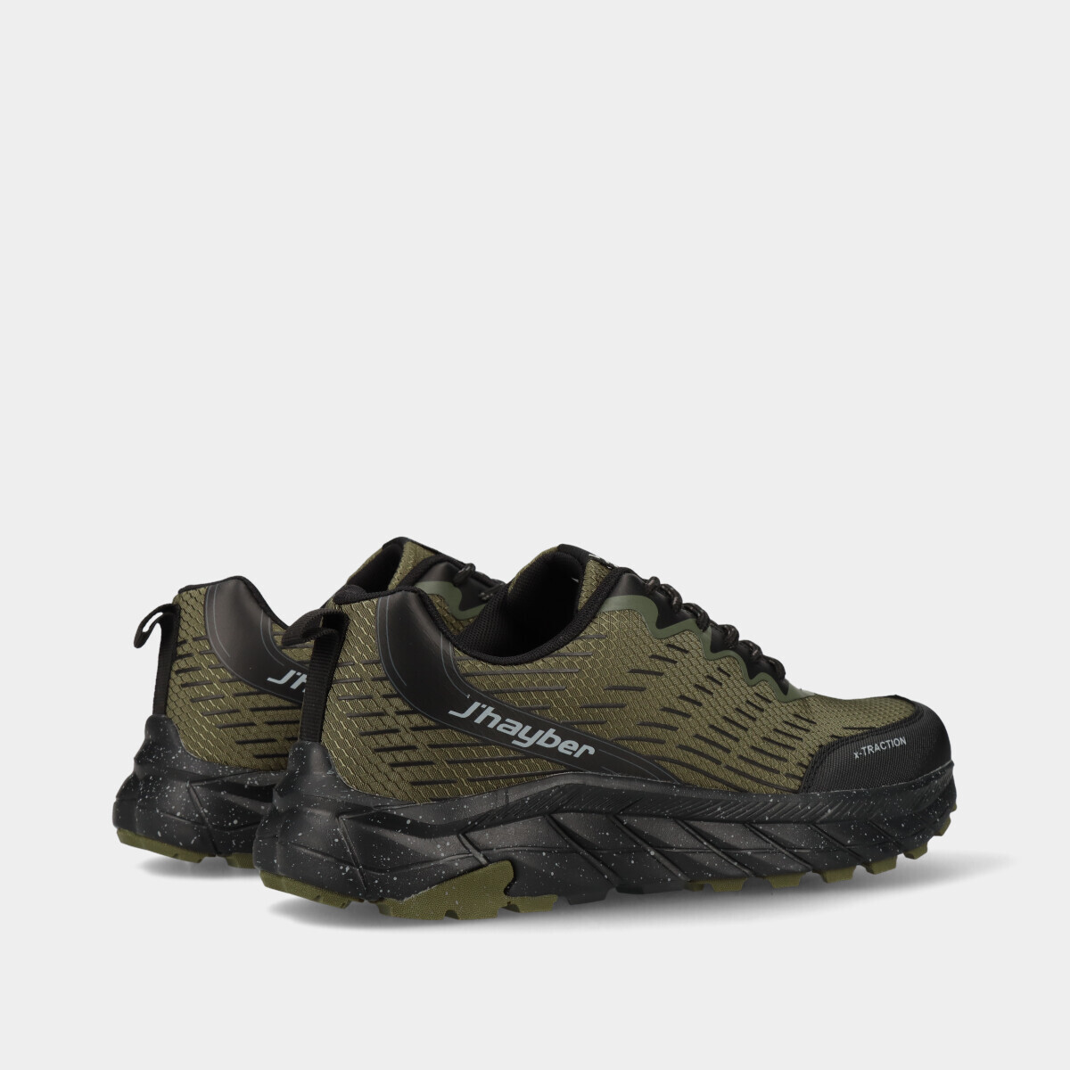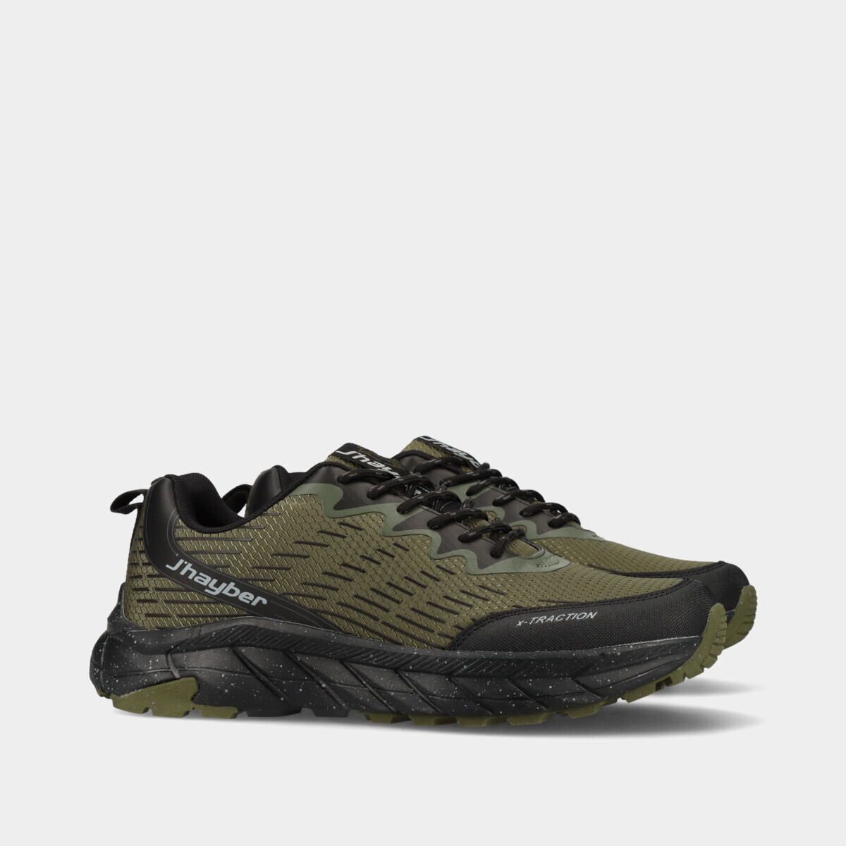 Ténis de trail running para homem em verde e preto, com sola X-Traction de aderência superior e ranhuras profundas, desenvolvidos para garantir máxima estabilidade e tração em terrenos exigentes, molhados ou rochosos. Tecido de malha respirável ajusta-se ao pé, proporcionando leveza, conforto e controlo em cada passo.
