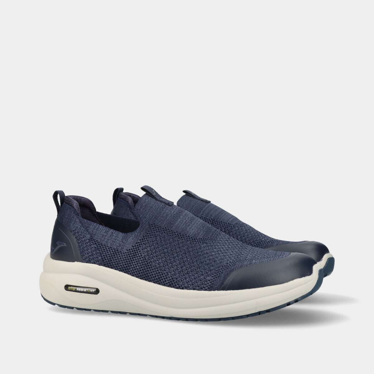 Tênis meia na cor azul com palmilha memory foam removível, sistema de ventilação VTS e sola antiderrapante.