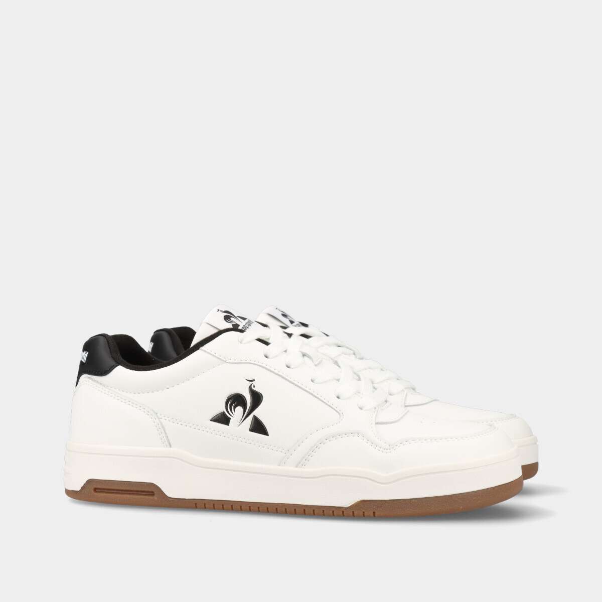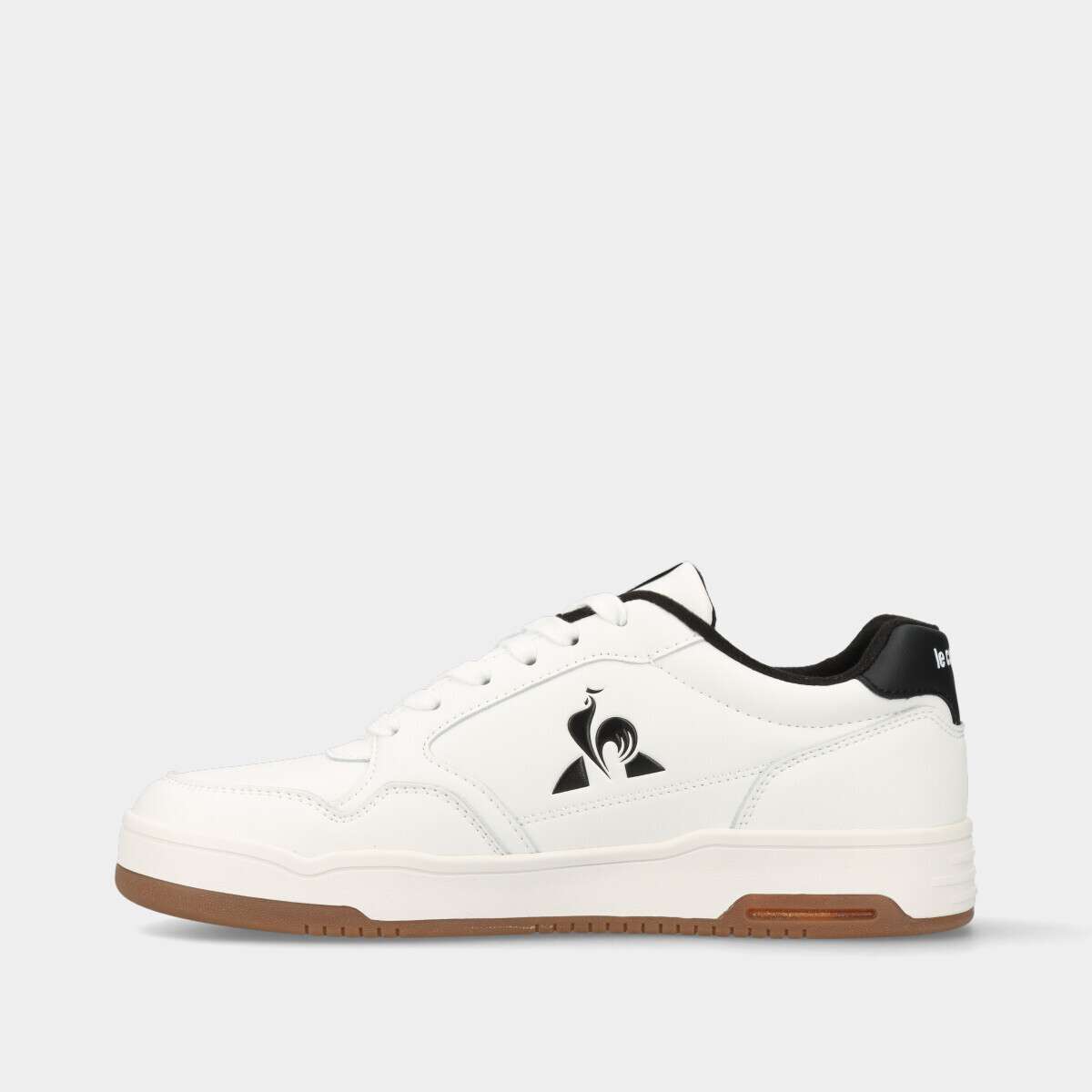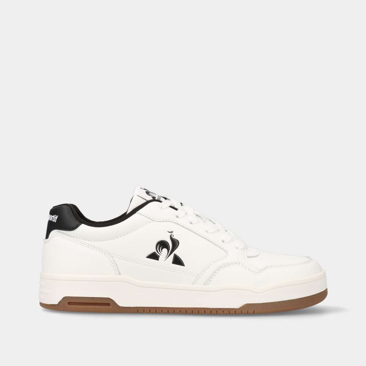 Ténis na cor branca com detalhes pretos, de palmilha confortável removível e cordão.