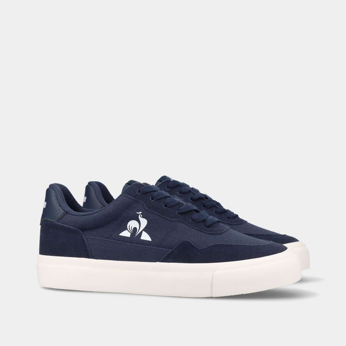 Ténis azul masculino de construção vulcanizada de elevada qualidade, inspirado na cultura do skate, com sola de borracha resistente à abrasão e concebido para máxima durabilidade.