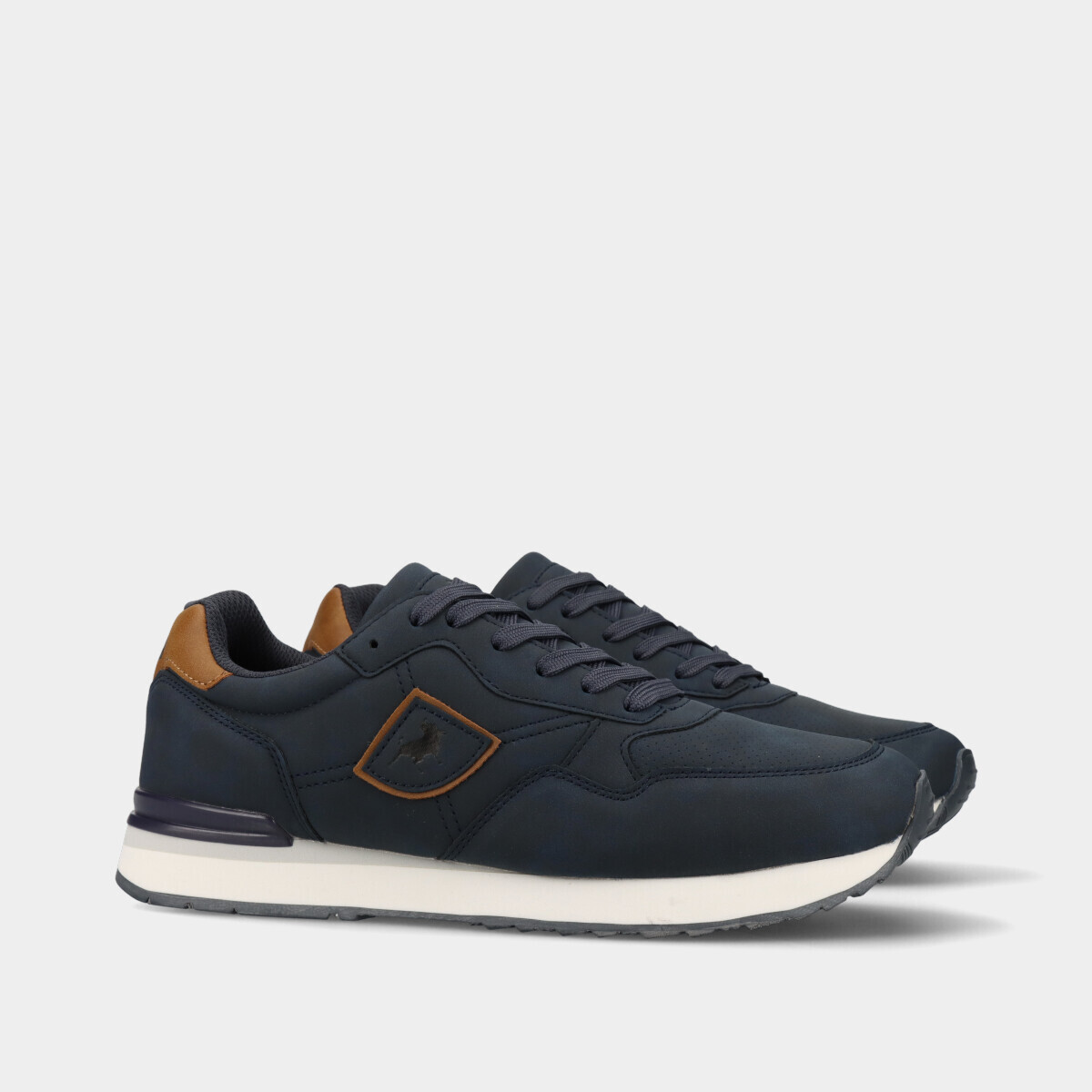 Ténis casuais para homem em azul com atacadores, diferentes texturas e malha respirável. Modelo confortável e resistente, ideal para passeios e uso diário.