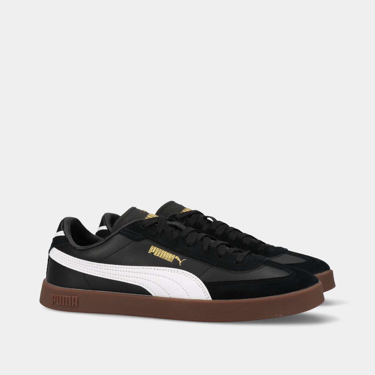 Tênis confortável na cor preta com detalhes em branco e dourado, de cordão.