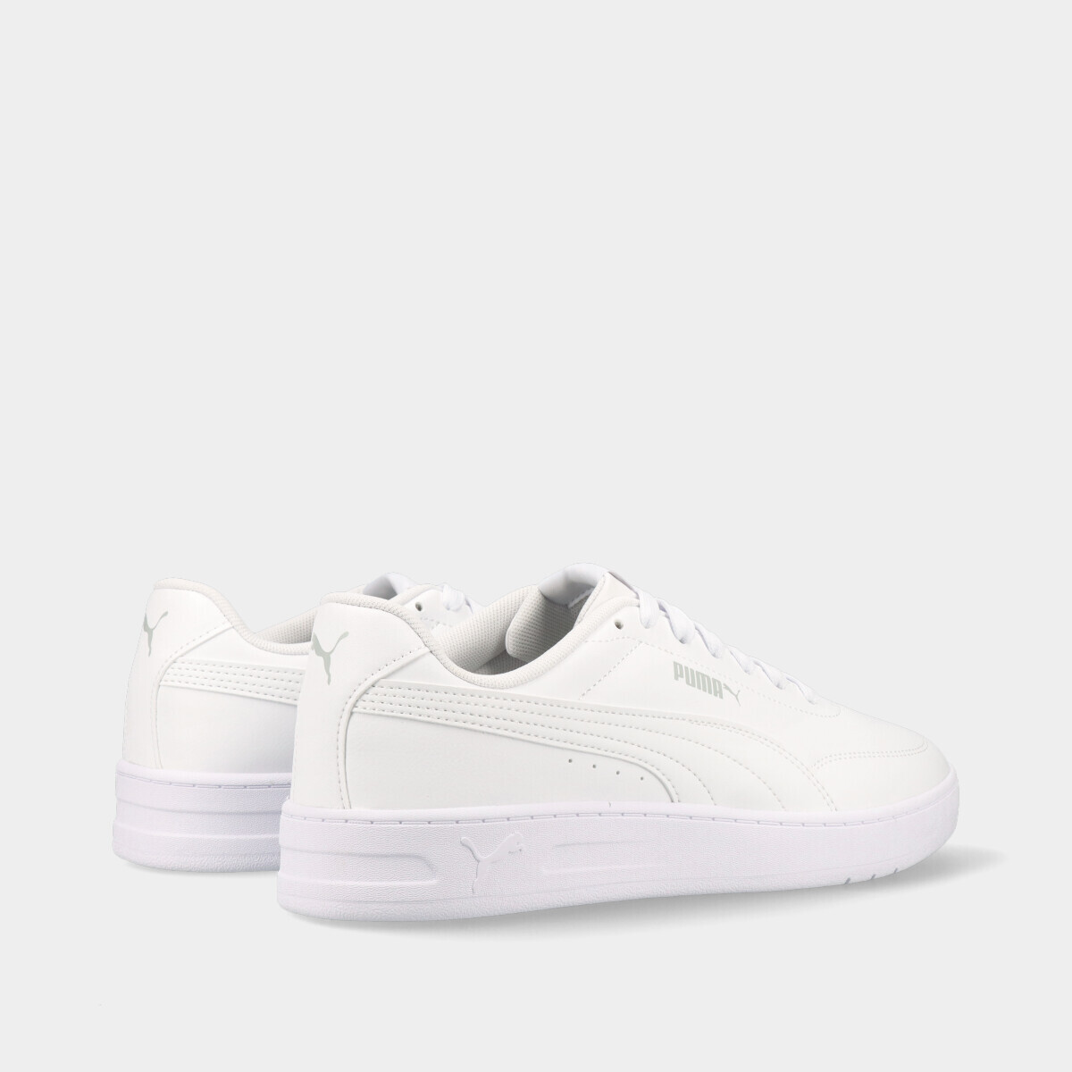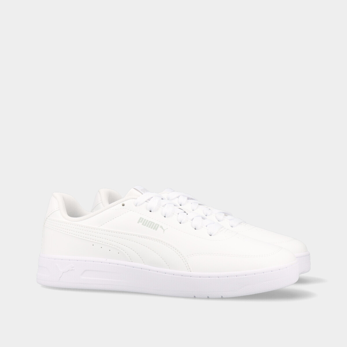Ténis Puma Court Classic Clean de homem, em branco, com atacadores e design intemporal inspirado no desporto. Concebidos para conforto diário e utilização casual, são ideais para quem procura ténis práticos, modernos e fáceis de combinar.