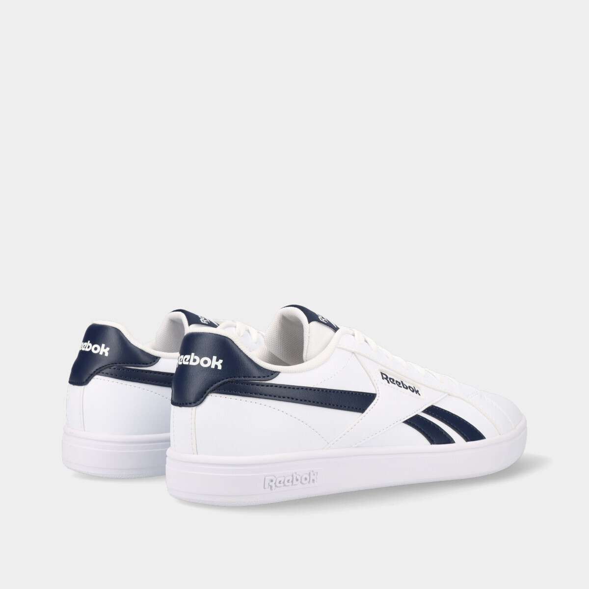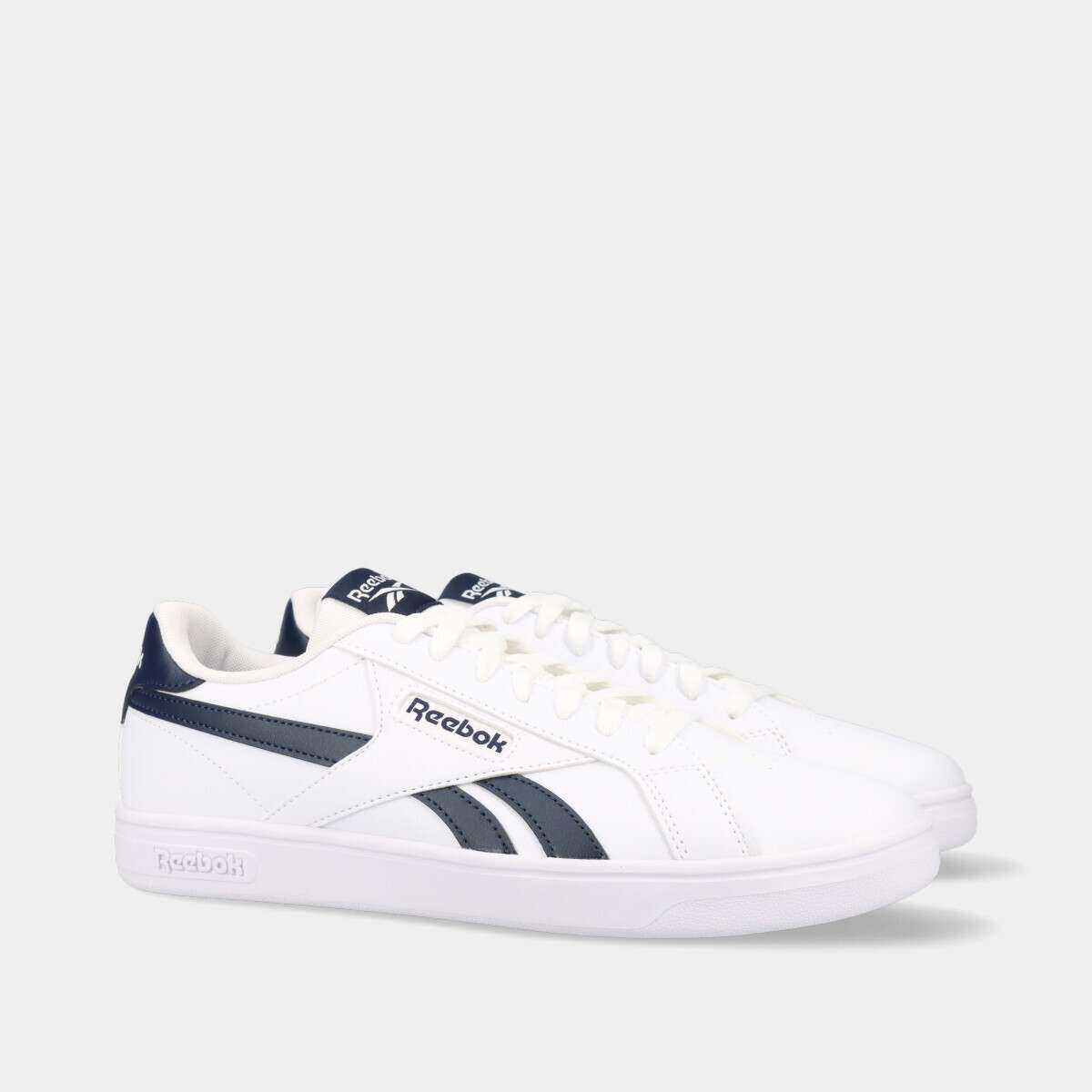 Tênis masculinos na cor branca com detalhes azuis de cordão.
