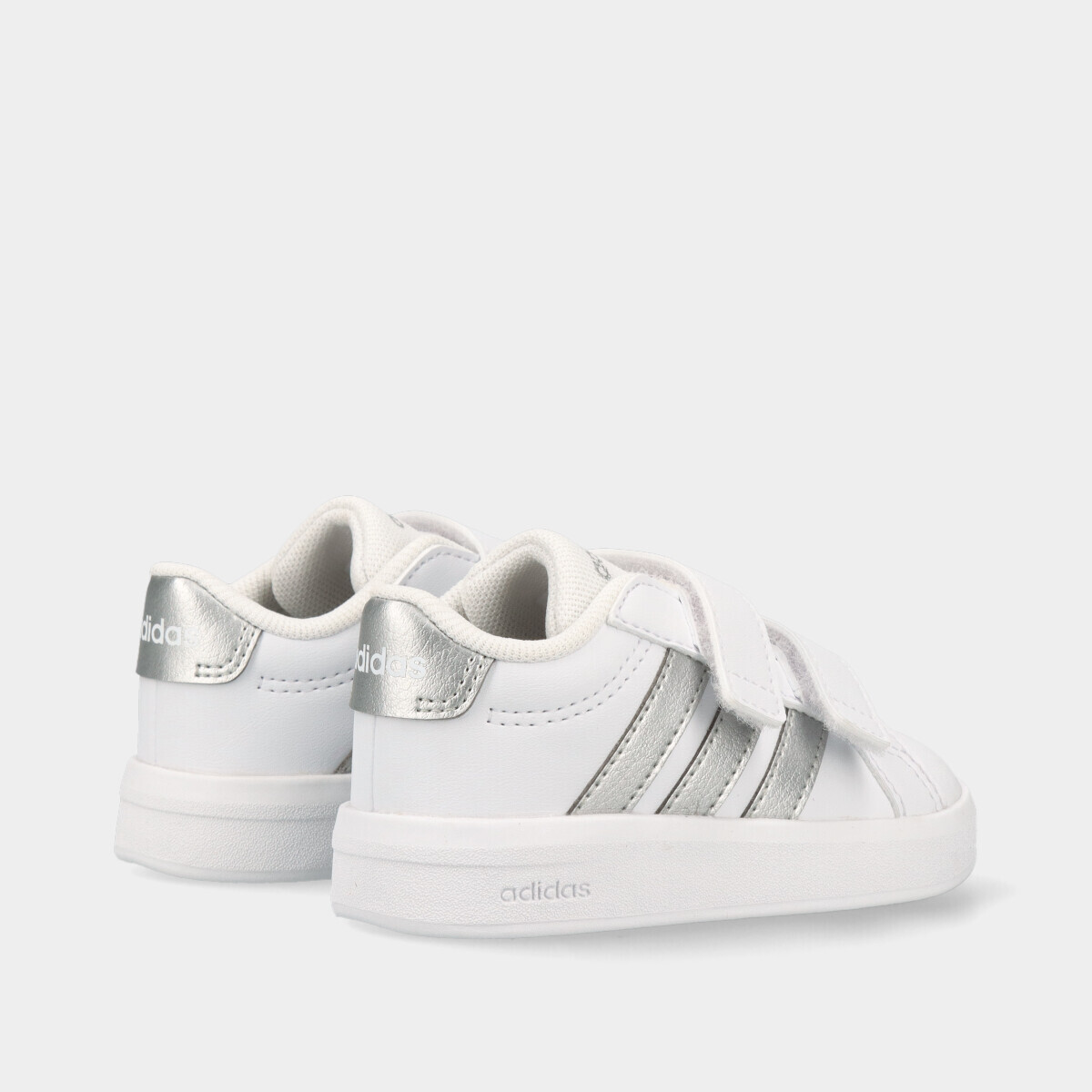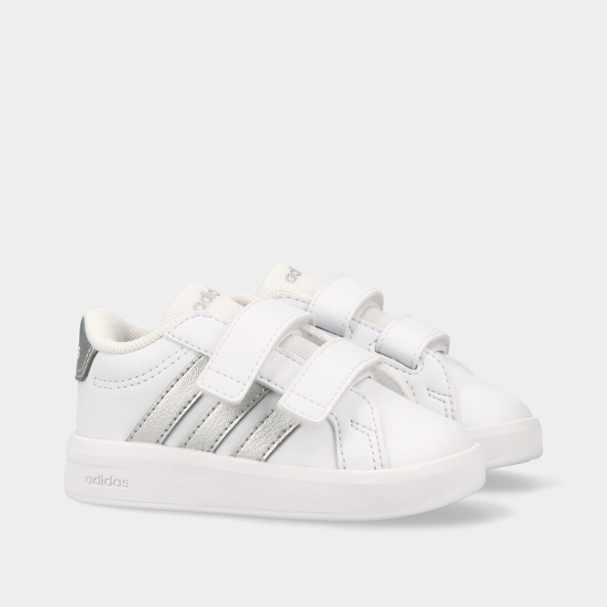 Ténis em branco com contraste prateado, confortáveis e práticos para o dia a dia. Com palmilha macia para maior conforto, rebordos acolchoados e dois velcros, são fáceis de calçar e descalçar. Um modelo resistente e versátil, ideal para a escola, lazer e uso diário, garantindo conforto e estabilidade ao longo do dia.