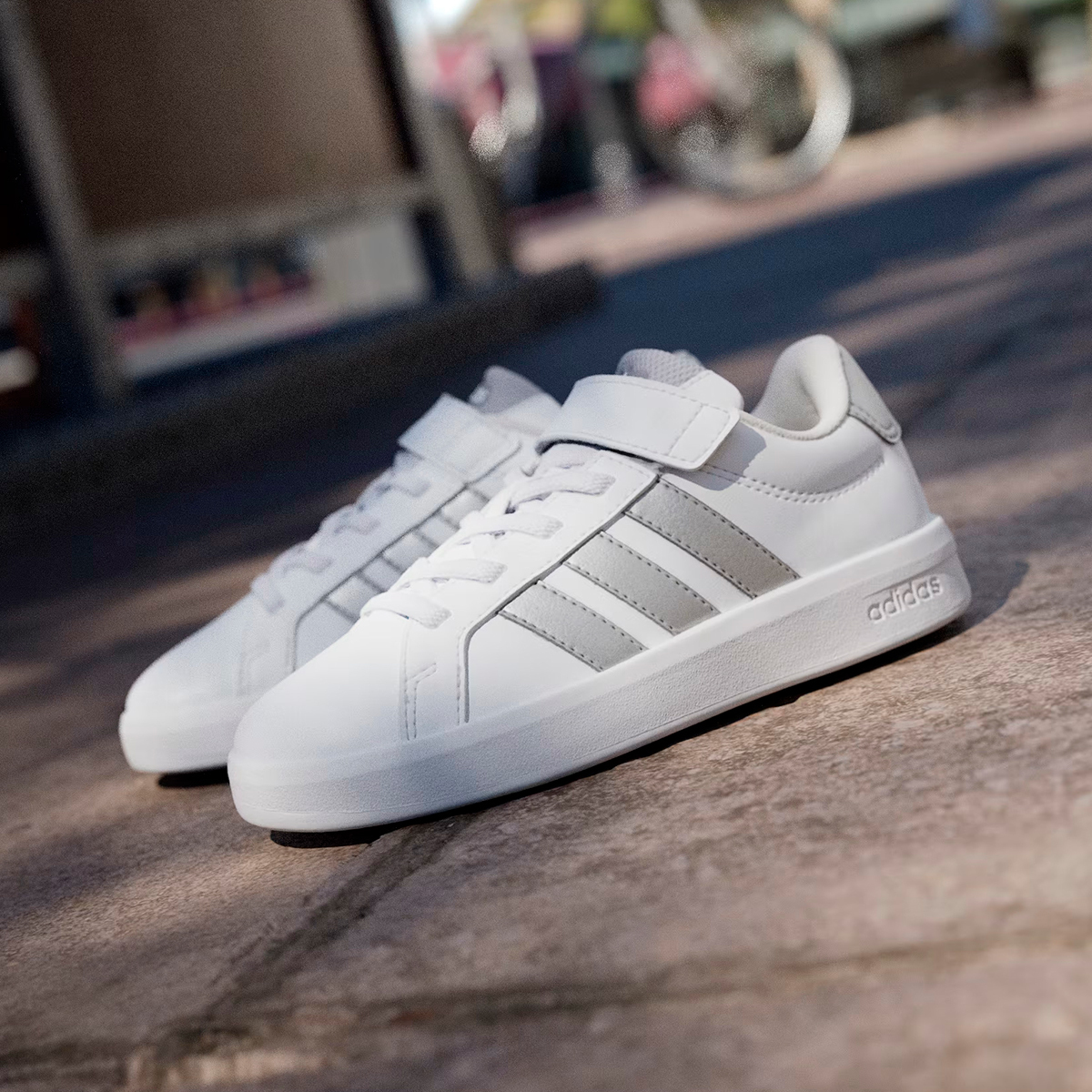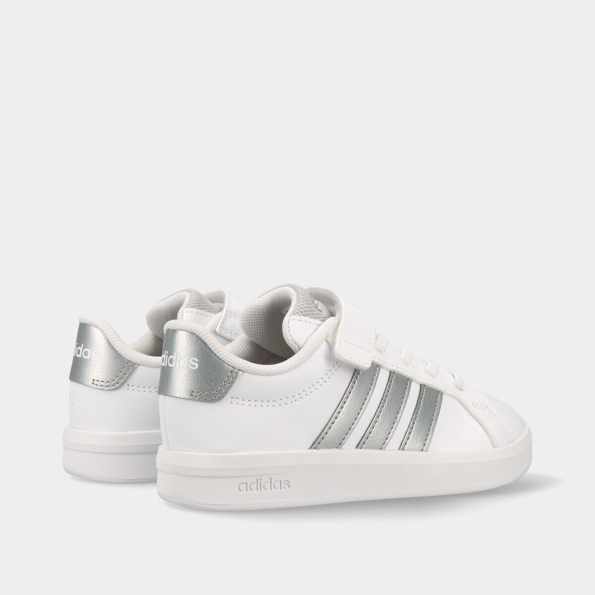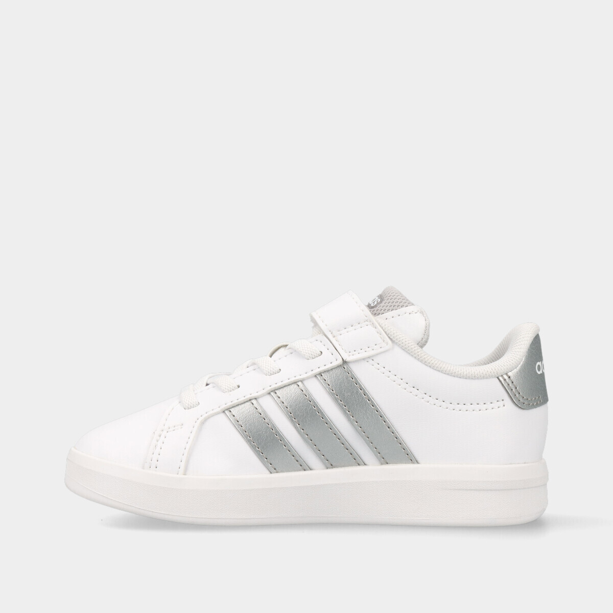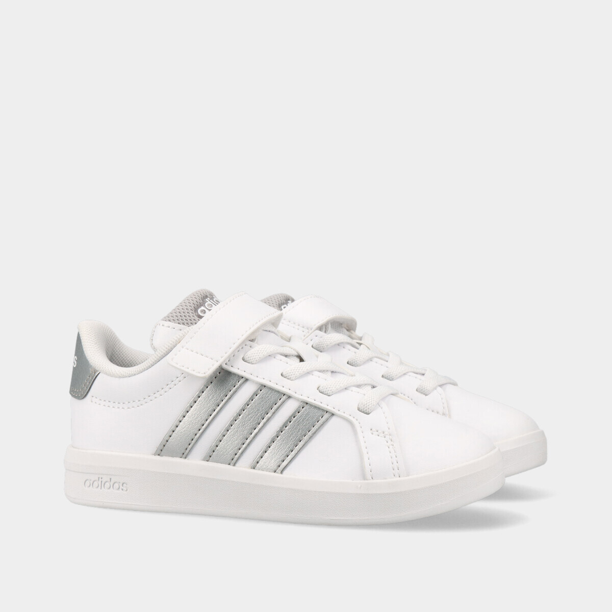 Ténis em branco com contraste prateado, confortáveis e práticos para o dia a dia. Com palmilha macia para maior conforto, rebordos acolchoados, fecho de velcro e cordão elástico, são fáceis de calçar e descalçar. Um modelo resistente e versátil, ideal para a escola, lazer e uso diário, garantindo conforto e estabilidade ao longo do dia.