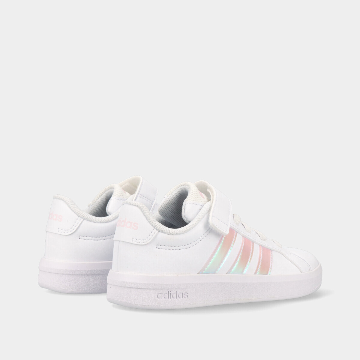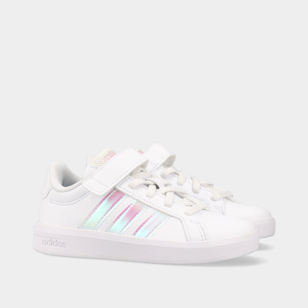 Ténis em branco com contraste holográfico, confortáveis e práticos para o dia a dia. Com palmilha macia para maior conforto, rebordos acolchoados, fecho de velcro e cordão elástico, são fáceis de calçar e descalçar. Um modelo resistente e versátil, ideal para a escola, lazer e uso diário, garantindo conforto e estabilidade ao longo do dia.