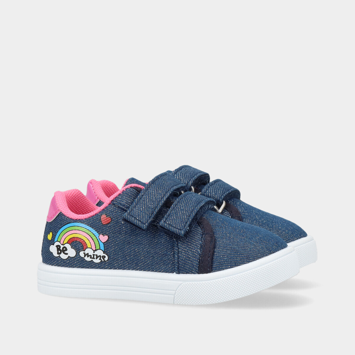 Sapatilha brilhante para menina, perfeita para um look divertido e confortável. Com palmilha em tecido e dois velcros para fácil ajuste.