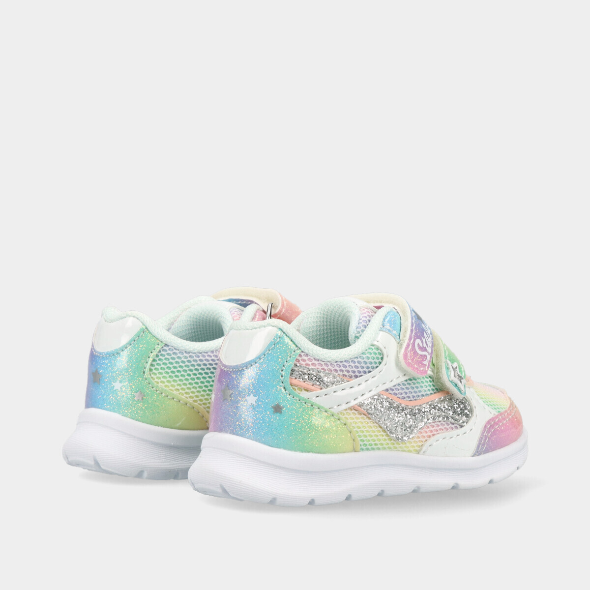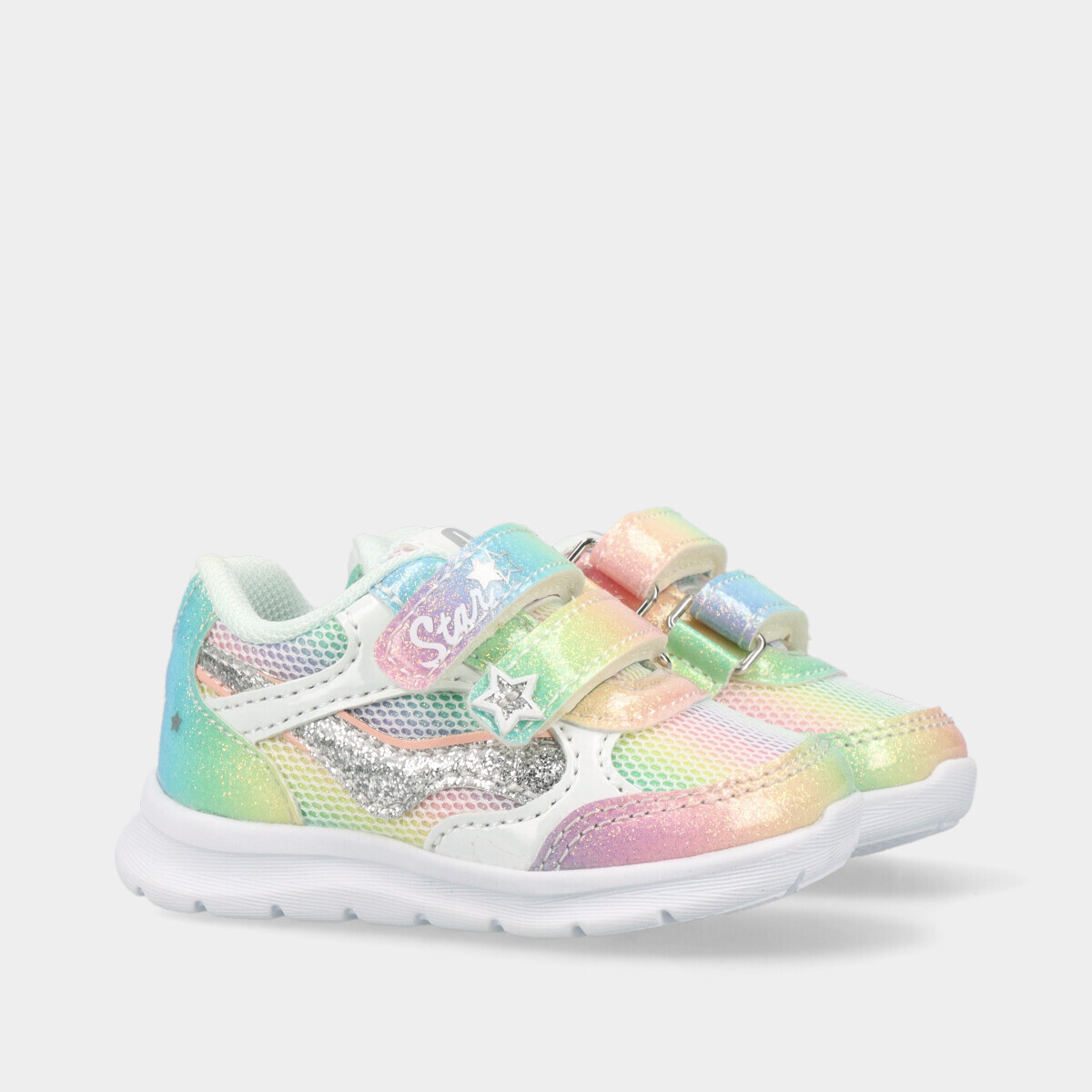 Ténis para menina da Chicco multicor com brilho. Confortáveis e leves, têm fecho duplo de velcro para calçar e ajustar facilmente. A sola “Flex‑zone” com linhas de flexão acompanha o movimento natural do pé, enquanto a forma arredondada e a palmilha exclusiva apoiam o desenvolvimento infantil. Ideais para o dia a dia, passeios e atividades casuais.