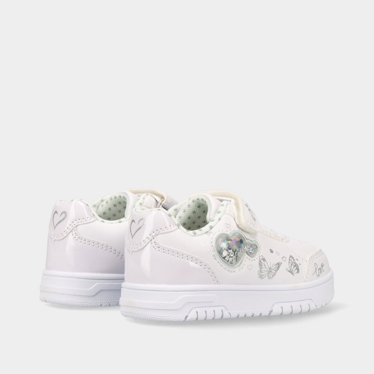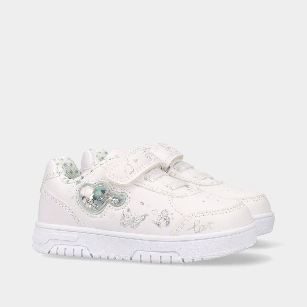 Ténis para menina em branco, ideais para escola, passeios e atividades diárias, com velcro e cordão elástico para calçar facilmente.